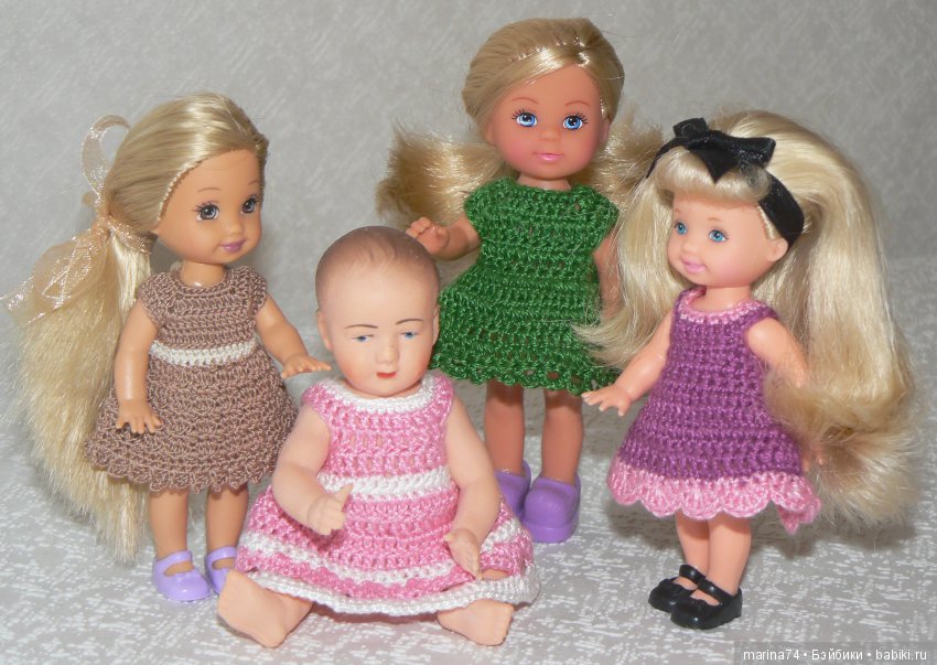 Но мне захотелось их первый раз показать именно в моих платьицах. Зря что ли я вязала?!