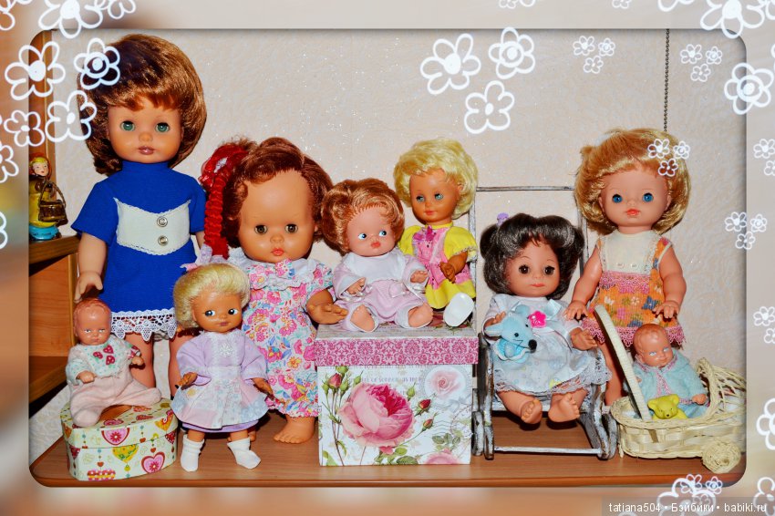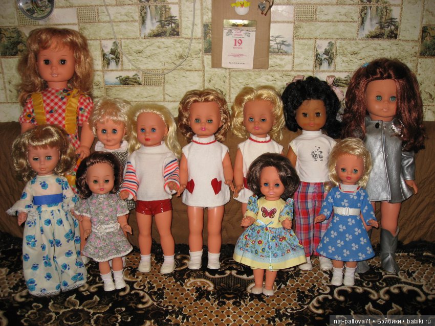 Добрый день! Наконец-то дошли рук показать моих красоток из детства. Это не коллекция, здесь все куклы когда-то были накормлены, переодеты, выведены на прогулку и уложены в кроватку. Сейчас же они вымыты-выглажены и наслаждаются законными местами за стеклянными дверцами шкафа (это пока дочка не возобновит их игровую жизнь).