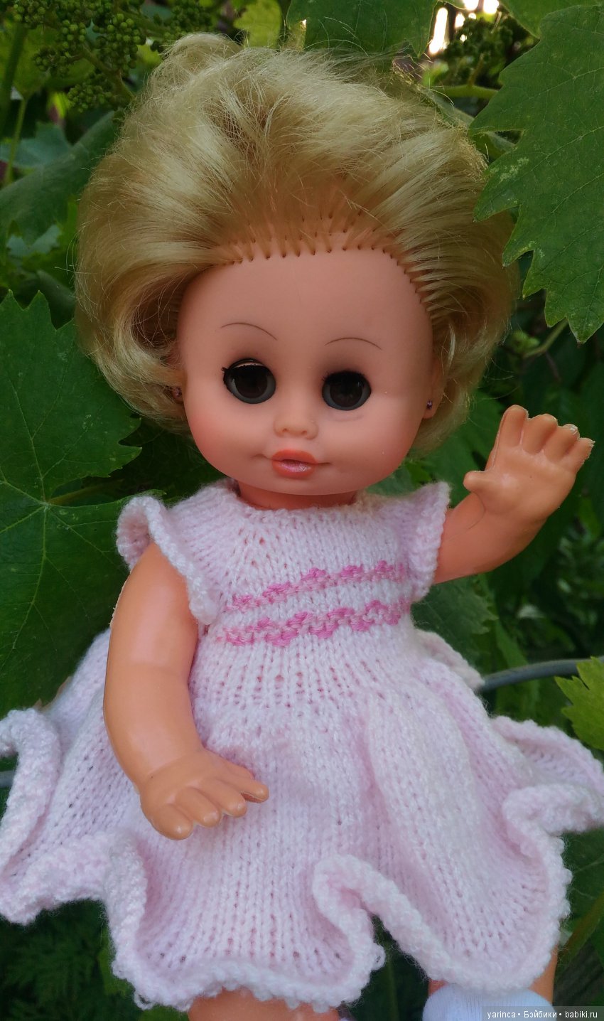 Платьица у биггушек связаны рукодельницей с нашего сайта Наташей, за что ей огромное спасибо! Девочек много, а времени катастрофически не хватает. Меня хватает только на то, что бы связать пинетки и трусики, дополнить, так сказать, образ!