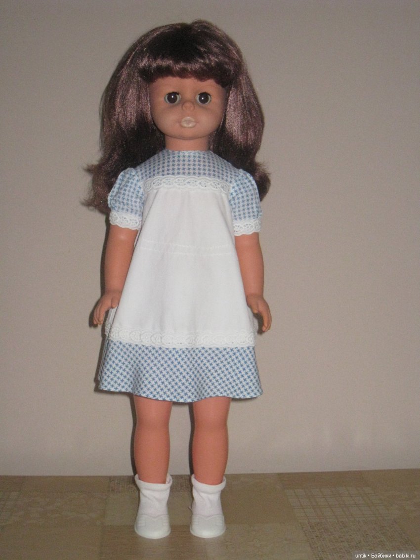 Вот по одёжке я помнила свою самую первую куклу, подаренную на моё рождение и лет до 5 она у меня была. Только увидев то самое платье, я перевела взгляд на лицо и «ты-дыщ», ОНА!!!
