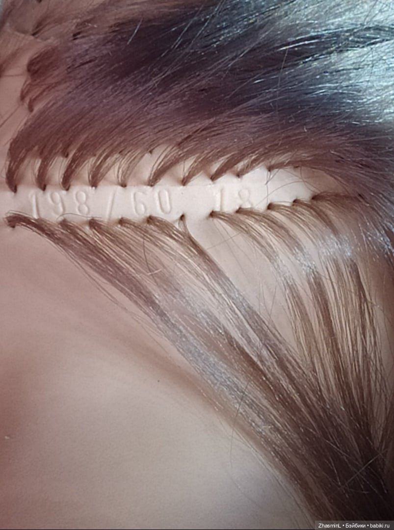 Только сегодня случайным образом разглядела у куклы цифры под волосами + в одной кукольной беседе в ВК мне сказали, что она, предположительно, ГДР и посоветовали поискать в интернете про неë информацию по этим цифрам. В Дзене я нашла пост с похожей куколкой от Sonni. Отличалась только первая цифра, остальные — один-в-один.