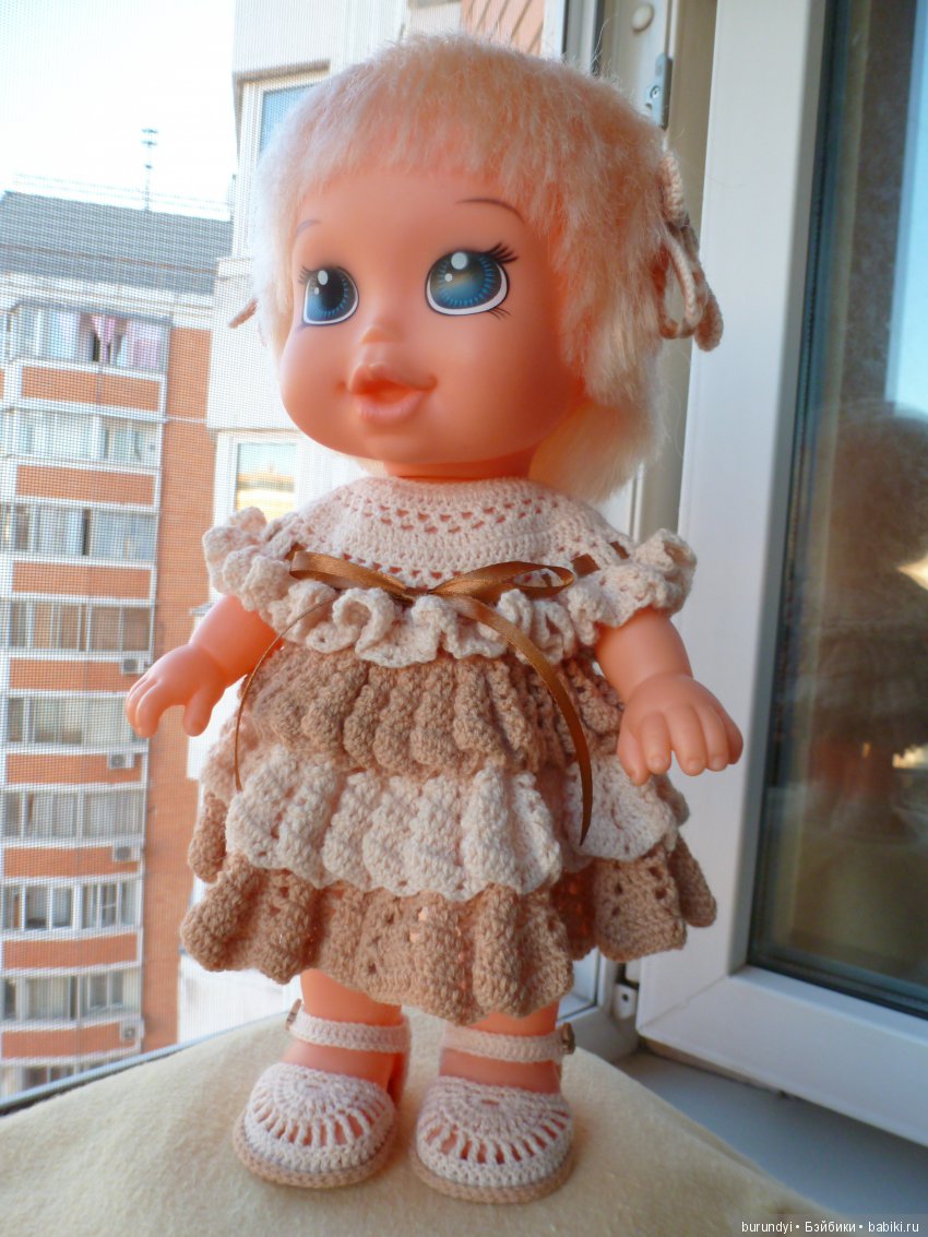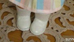 Мне представляется, что винтажки должны выглядеть подобным образом. Её родное платье несмотря на все усилия требует реставрации и замены части ткани, туфелек не было. А что они вообще носили тогда??? Интересный размер ног у неё 5,5\3 см, но ножка полненькая, не все ей подойдёт, у меня она пока босая.