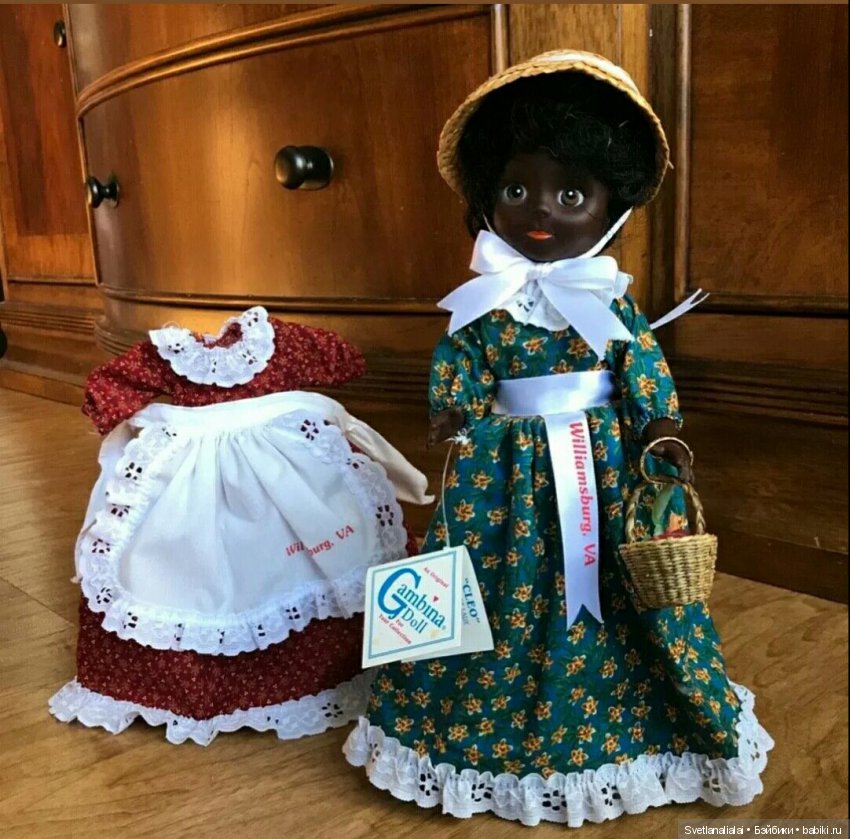 И тут выясняется, что молды Мамби разные: наша первая, в подлинном аутфите, вероятно, стык 60 и 70-х прошлого века. А новенькая, в самопошиве прежней хозяйки, добротном, но явно сшитом в 90-е прошлого же — постарше. Скорее всего, лет на 10-15 постарше. И парик у неё классический, на сеточке, а не на виниловой шапочке прошивка. И волосы натуральные. И оба — и Мамби, и Вумби — одномолдники-ровесники. Прежней хозяйке-мастерице — респект, сшито отменно все, что на куклах. Да ещё вещичек подкинула, хоть и принты не совсем наши, но сгодятся куда-нибудь.