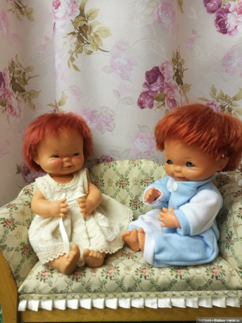 Родная одежда, рубашка, сохранилась только у мальчика. Штанишки были связаны прежней хозяйкой. А вот девочка досталась мне голышом, наряд специально связан мной для этой очаровательной малышки!