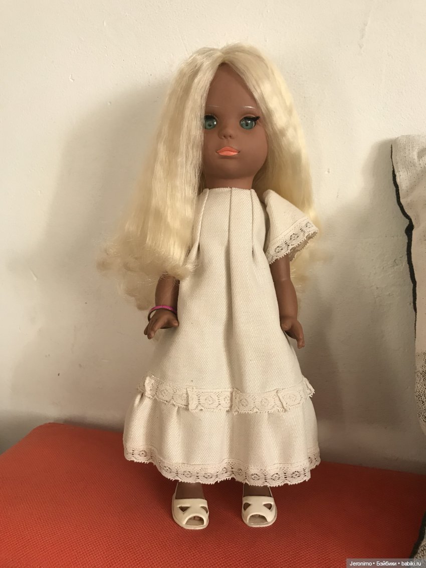 На днях мне позвонила моя двоюродная сестра (мы с ней ровестницы) и спросила, приму ли я в свой дом её Анжелу? Она, разумеется, знает о моем увлечении куколками). Я с радостью согласилась! Потому как в детстве мы всё лето проводили вместе с систр у бабушки, и конечно же я знакома со всеми её игрушками/куколками. Она предупредила меня, что девочка не в кондиции, её нужно привести в порядок. И вот сегодня состоялась моя встреча с той далекой девочкой, куколкой из нашего детства.., куколкой, с которой я виделась лет 35 назад!!! С ума сойти) Как давно это было… Анжелу подарили моей сестре её родители на ДР. Не буду дальше вдаваться в подробности)… Далее как у всех: дети выросли, игрушки позаброшены. Но эту девочку мама моей сестрички решила сохранить. Она долгое время лежала на антресоли с остальными ненужностями… и вот сегодня у нашей Анжелки второе рождение!