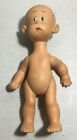 Держала в руках схожего персонажа, но там лепка губ попроще и росточек всего сантиметров 20. Чистый пластик, поцарапался… полагаю, годов 70х куколка
