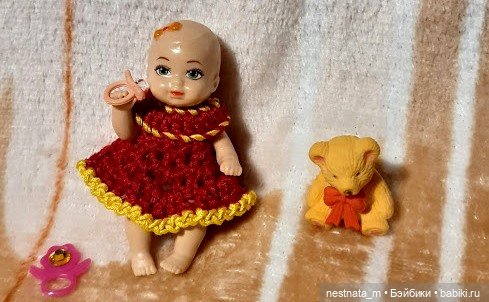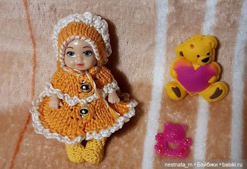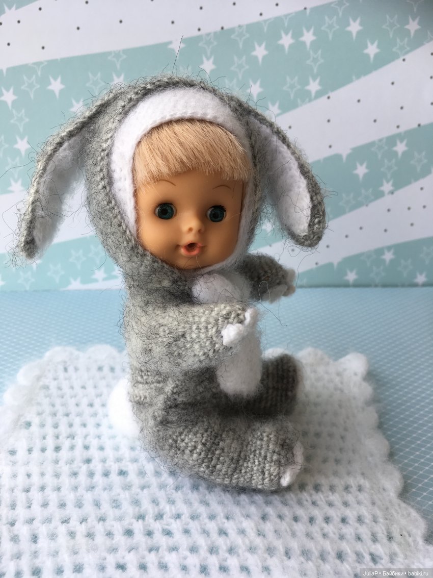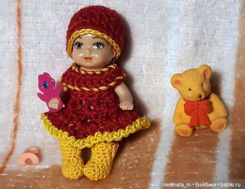 Знакомо ли вам страстное желание всех вокруг кутать? В детстве я всегда хотела закутать кукленка, потом детей, сейчас опять кукленка. Круг, как говорится, замкнулся. Недавно, я реализовалась в этом желании. У меня есть очень симпатичный и очень маленький Чехословацкий пупсеныш. И вот появились тоненькие, шерстяные ниточки и началось! Сначала платьице, крошечное и очень милое. Потом шапочка- обязательно такая, чтобы закрывала лобик. А сверху шапочка, закрывающая ушки и часть щечек. Нужно прикрыть ручки, но оставить открытой грудку, украшенную цветочком. И конечно же штанишки, без них холодно же вообще. Хорошо, что нашлись ботиночки, иначе пришлось бы вязать носочки. Странно как-то загружаются фотографии. Из 4 загрузилось только две. Девчонки, у всех проблемы с загрузкой фотографий? Вроде бы написано максимальное количество 50, а реально две.