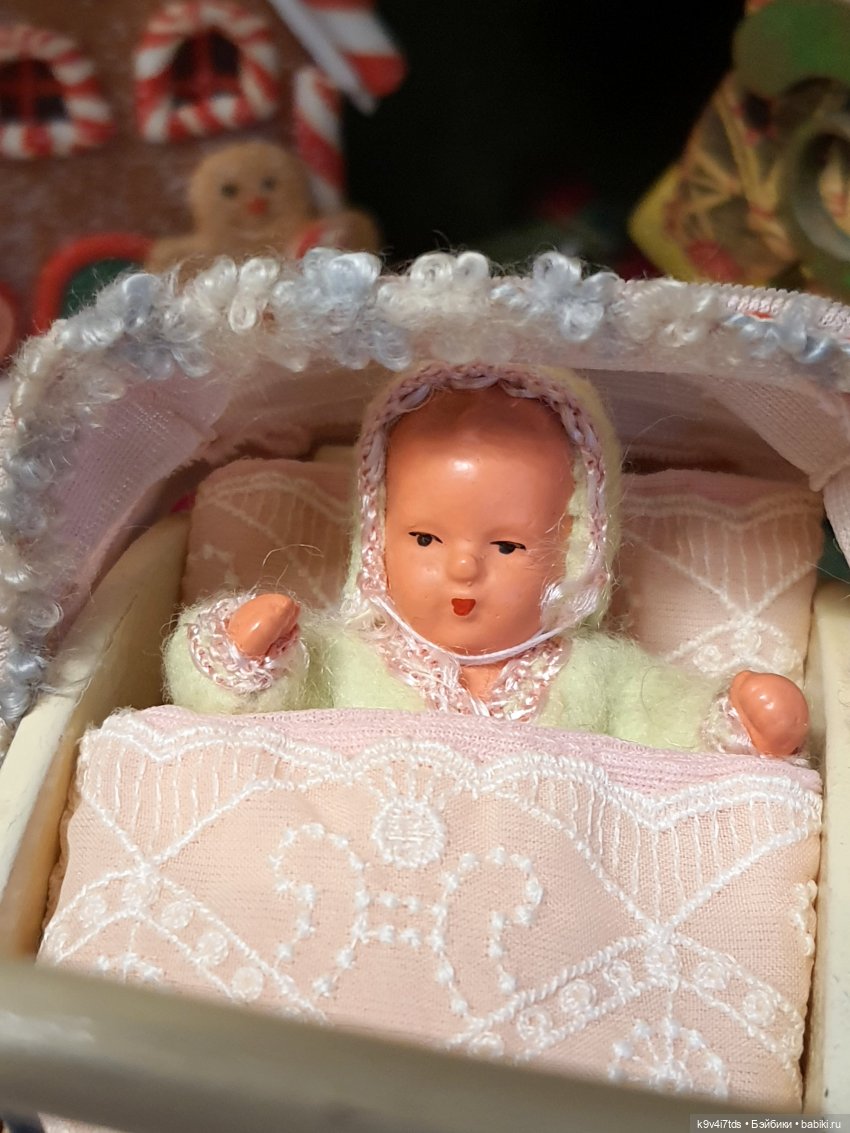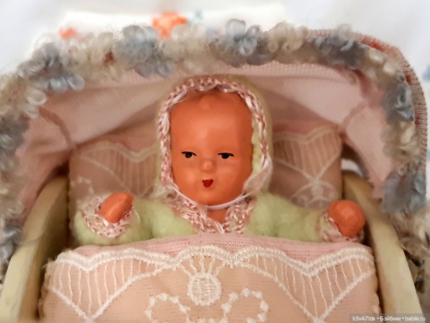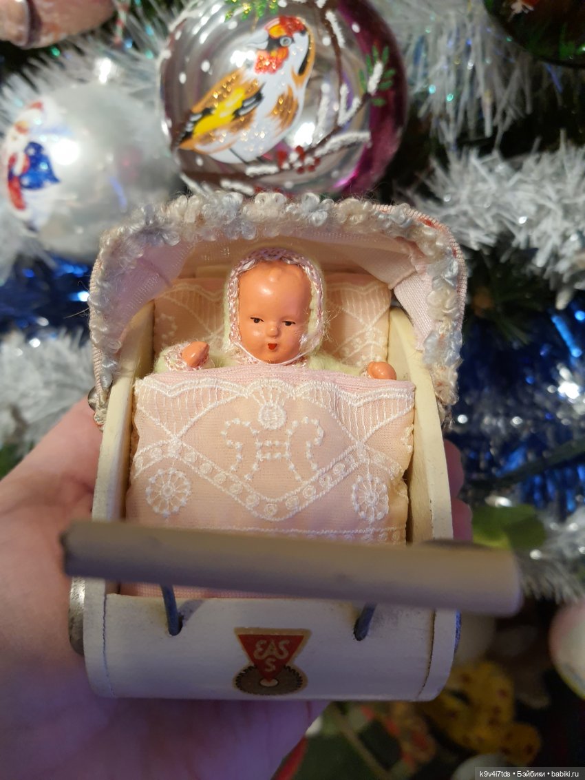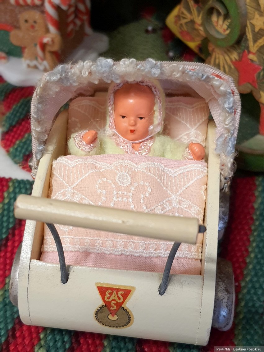 Всем привет! Был у меня в детстве крошечный композитный пупсик, который мне очень нравился. Долгое время я искала похожего и вот случилось Чудо! На ebay увидела такого малыша, он был не только в родном наряде, но ещё и со своей коляской. Продавец была из Канады, доставка в Россию была в 3 раза дороже, чем цена пупсика в коляске.