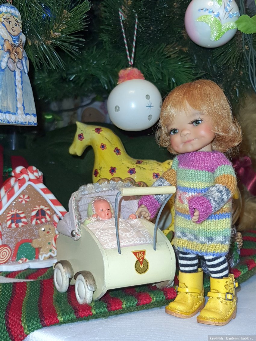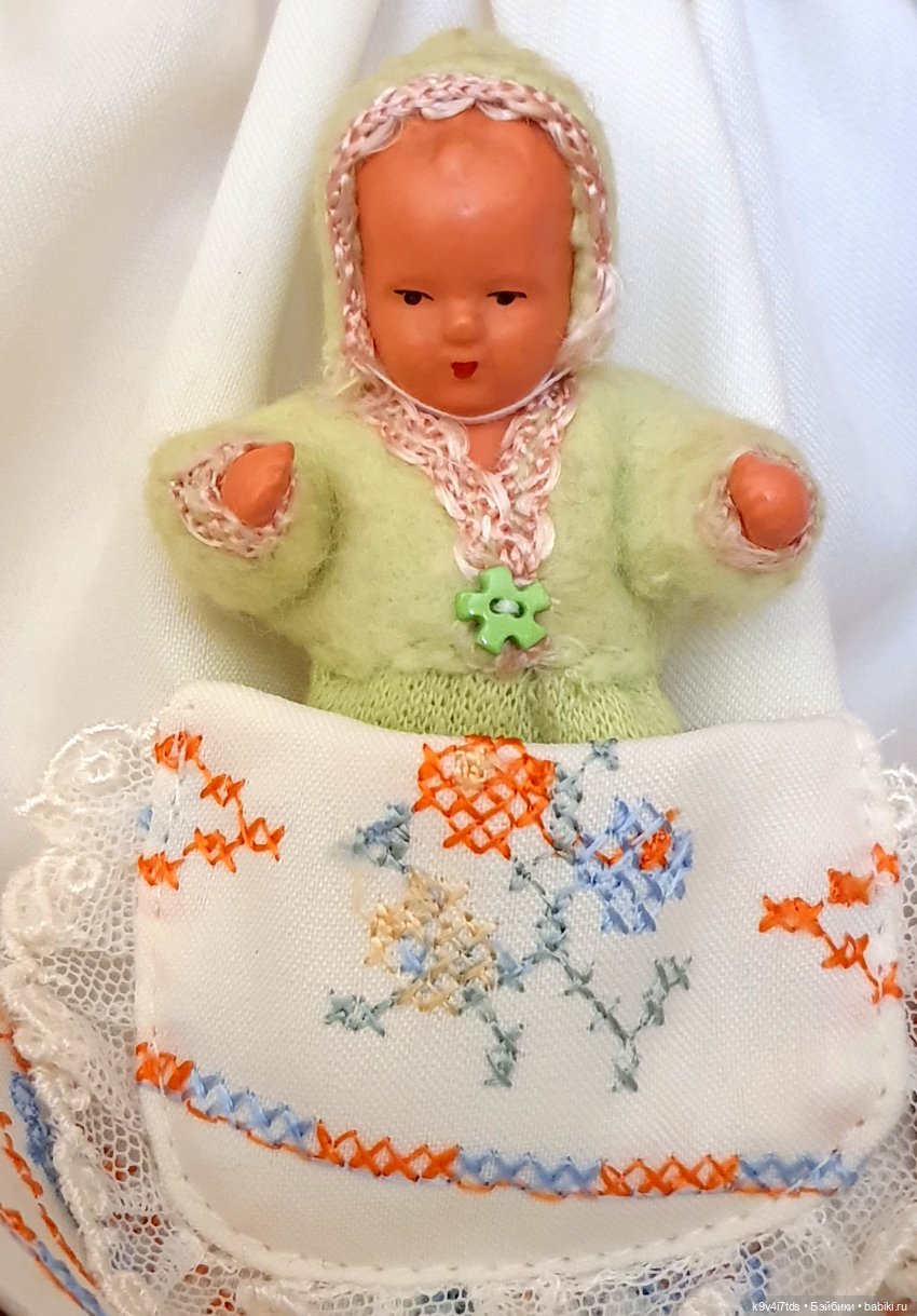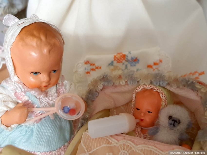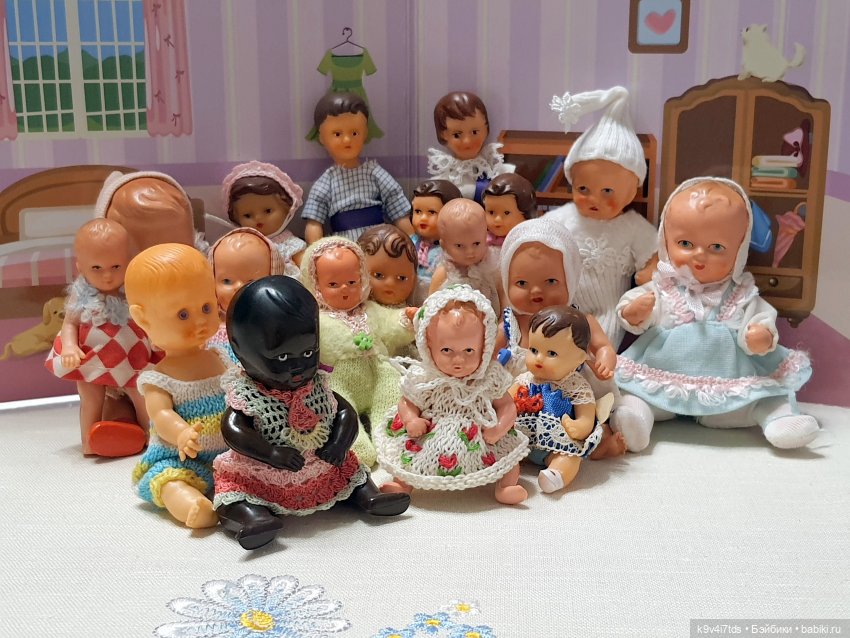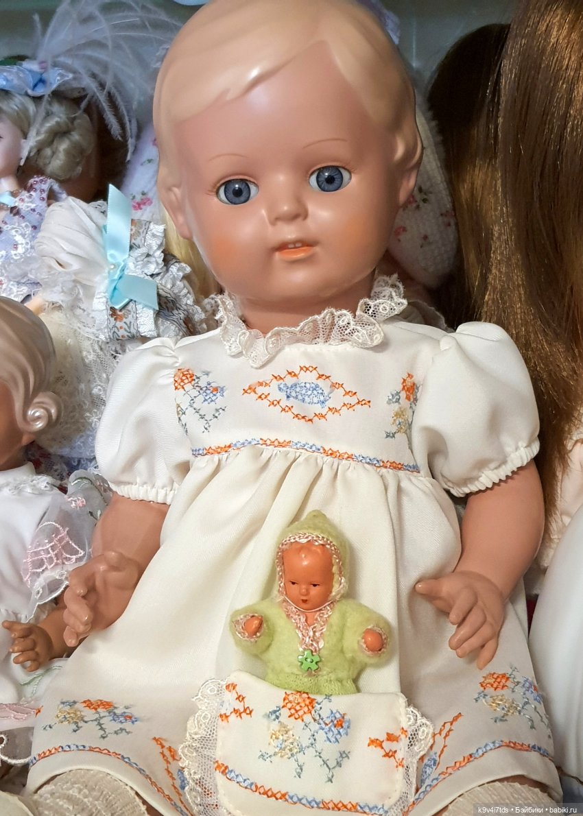 Там на заднем плане пупсик в розовой шапочке, у меня точно такая же малышка. У меня в детстве такая была, но потерялась, и её здесь нашла и купила.