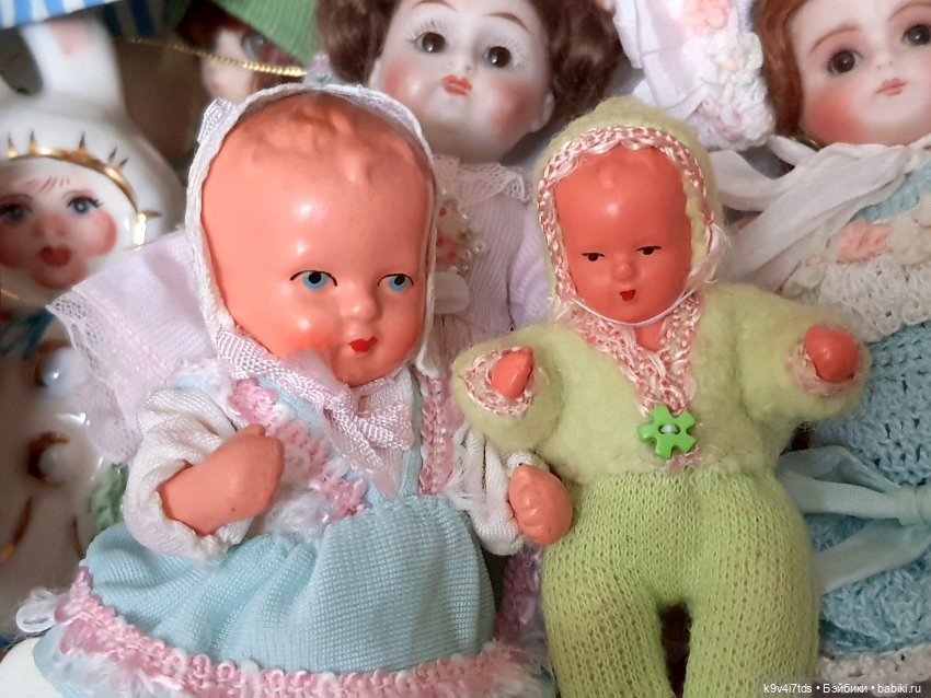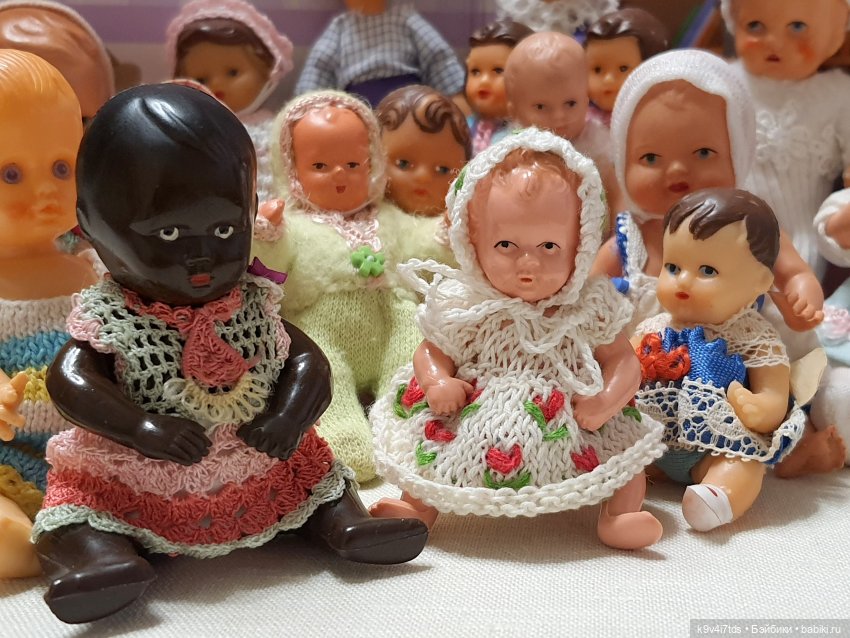 У меня был точно такой же пупсик, а у моей подруги — покрупнее, как Ваша синеглазка в голубом платьице. И мы играли, как будто у нее дочка годовалая, а у меня — новорожденная. Это были наши любимые куколки. Как увидела фото, где они обе вместе, сердце защемило.