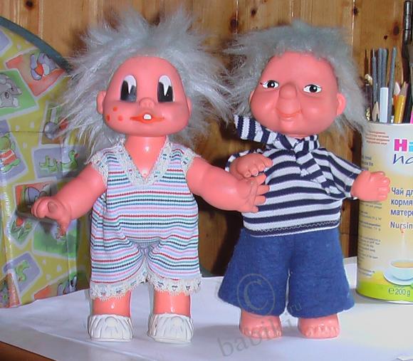 Добавлю еще воспоминаний. Мальчик даже в родной одежке, а девочка собрана из двух куколок.