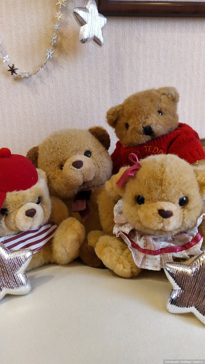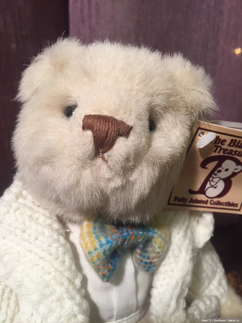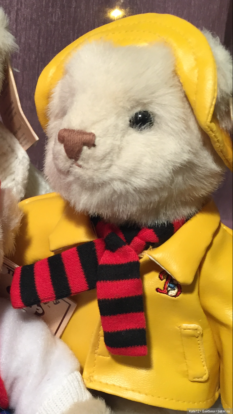 У всех мишек двигаются голова, руки, ноги, крепление шплинтовое. Имеется на левом ушке этикетка книжечка подлинник производства Мишки и бирочка на попе с именем и годом производства.Высота Мишек 24-26 см стоя и 18 сидя. У каждого индивидуальная сшитая одежда с логотипом Bialosky.