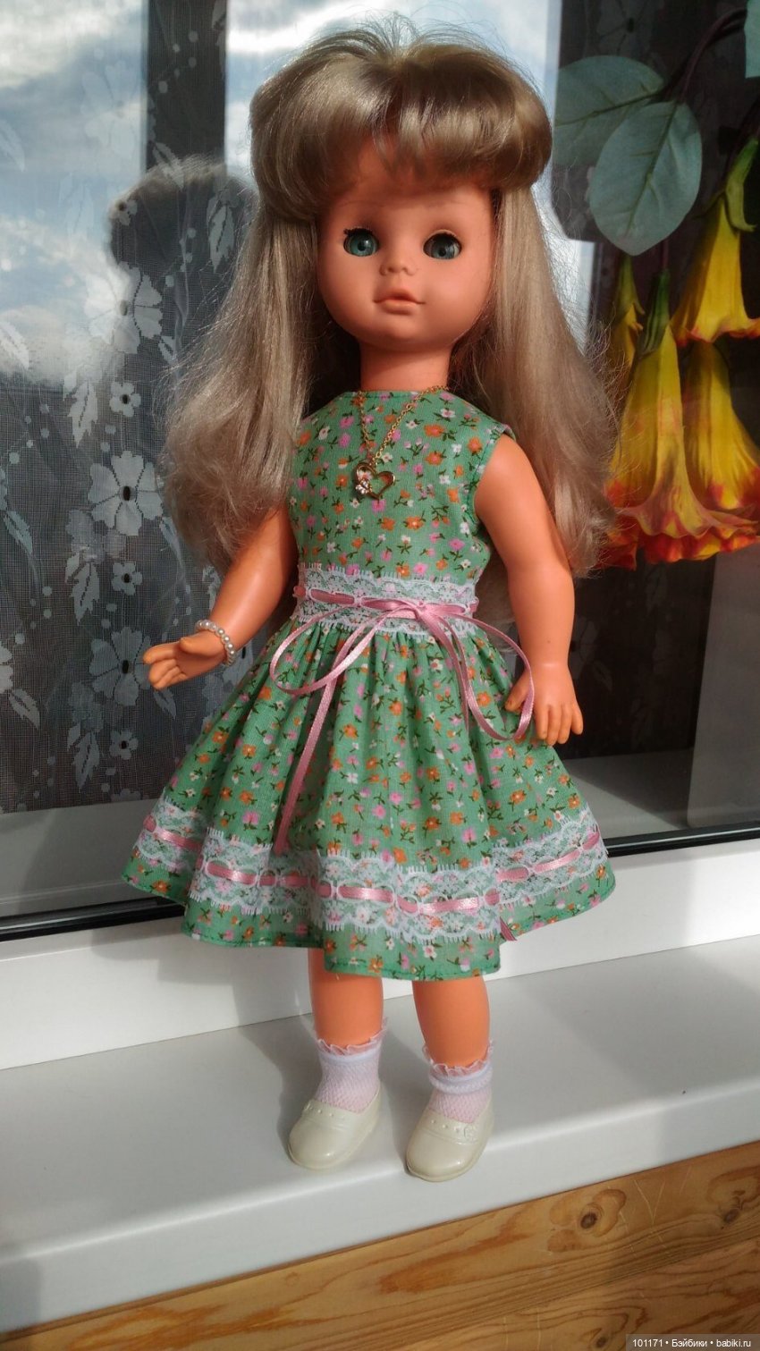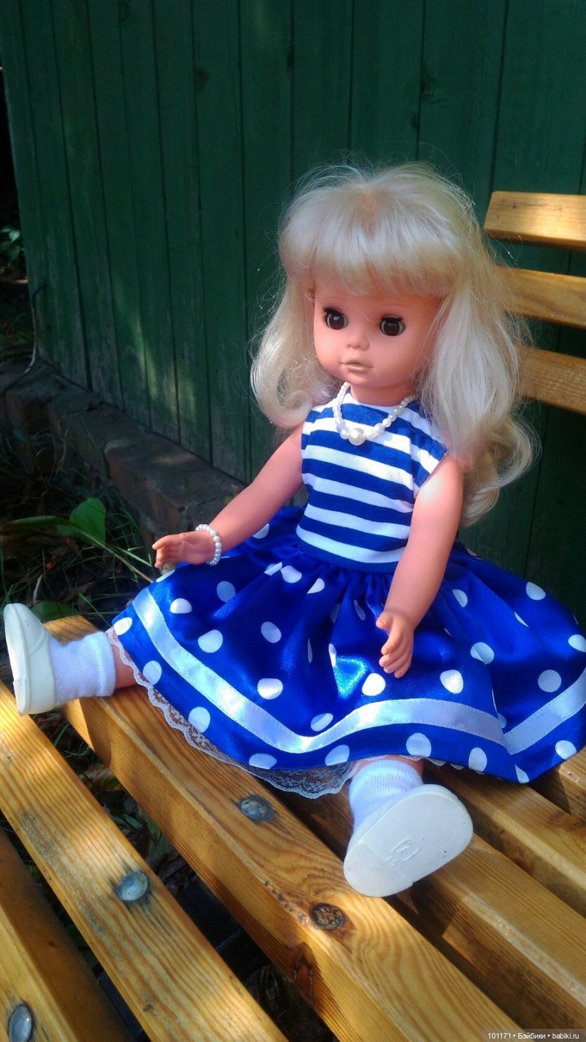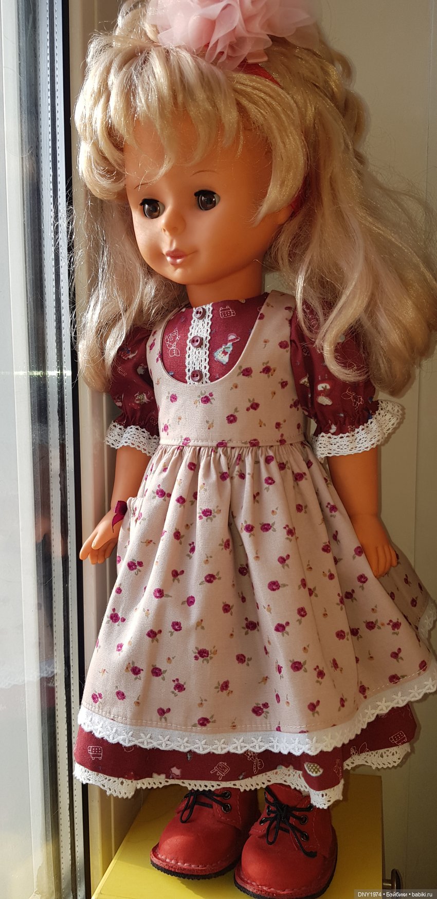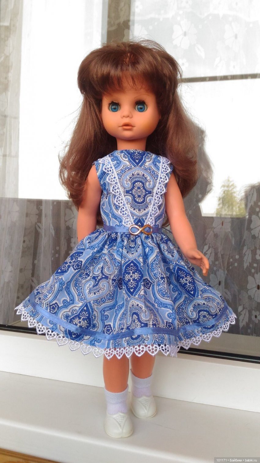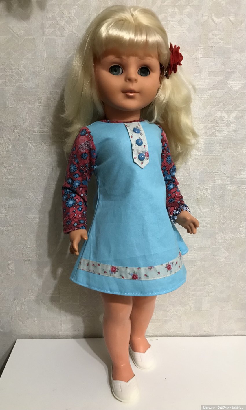 Моя новая Сони приехала ко мне в родном платье, но я её нарядила в свое! Её родное мне не очень нравится (. Теперь будет красоваться на полочке и очень меня радовать!
