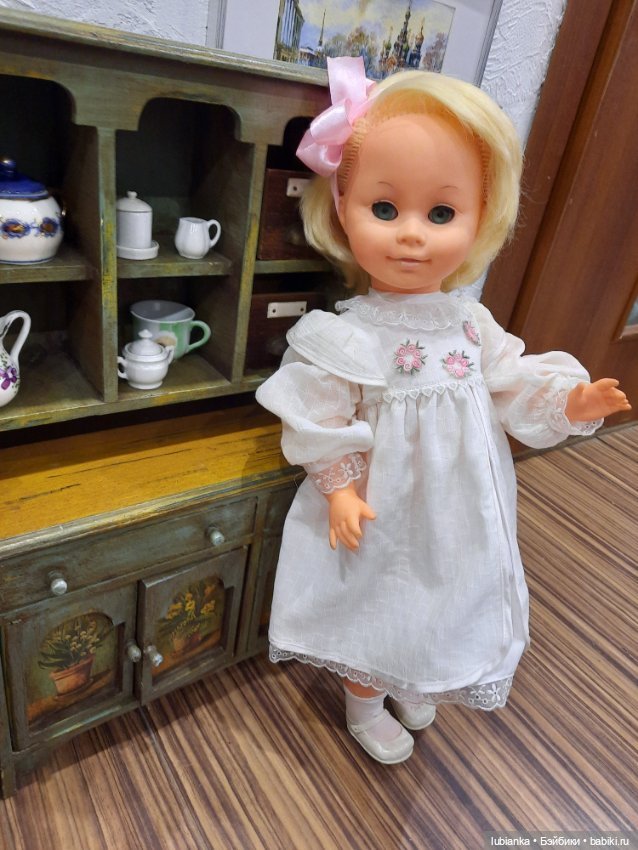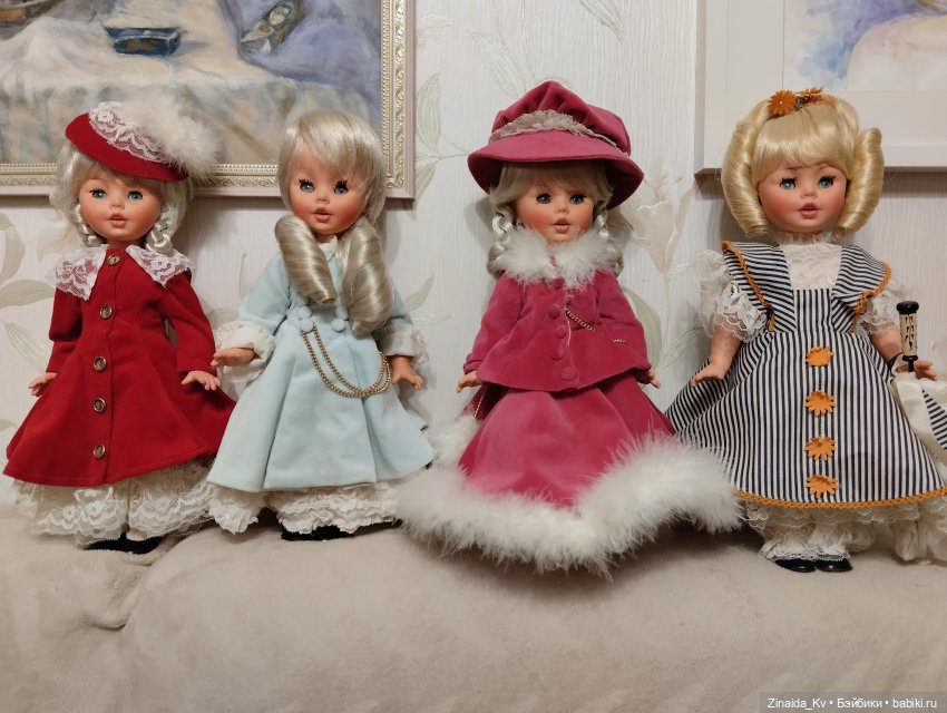Здравствуйте, дорогие жители этого замечательного сайта! Я продолжу рассказывать о своей коллекции винтажных кукол. В далёком уже 2019 году, когда я и начала собирать кукол ГДР, я сперва хотела собирать только малышек 30-35 см, не больше. Они не занимают много места, никаких хлопот. Купив очередную малышку Раунштайн 30 см я невольно обратила внимание на роскошных кукол, которые продавала в Самаре известный коллекционер винтажник Наталия. К ней я поехала на майские праздники в 2019 г. с моей дорогой подругой Катей, именно она меня «заразила» куклами. Катя сказала: я поеду с тобой, а то все деньги там оставишь). Я написала Наталии и она сказала: жду вас с подругой, если кукла Ваша вы непременно это почувствуете. Наталия живёт в красивом месте, в коттедже, наполненном интересными вещами: антикварными и винтажными куклами, старинными нарядами, мы с Катей не скрывали своего восторга, нас поразили старинные вещи интересного кроя, а девушки мы обе шьющие. И вот Наталия показала нам свою роскошную коллекцию кукол, там была даже Бриджит в лаковом плащике, другие куклы в отличном сохране. И… там была она, моя теперь уже любимейшая кукла, брюнетка Раунштайн, 55 см. Как только я ее увидела я поняла что это моя кукла, она оказалась с рабочим пищиком и довольно громким. Сразу назвала ее Вероника. Потом у нее появились сестрички, каждая из кукол приезжала от коллекционера, всех я вспоминаю с теплотой и благодарностью. Надо сразу сказать что Вероника кукла очень ревнивая, как только я покупала новую куклу этого молда она возмущённо падала с полки с громким плачем. Одна из куколок приехала ко мне в 2020, от моей замечательной подруги Олечки Судариковой. Ей я сшила красивый бирюзовый наряд. Что тут началось: Вероника бесконечно падала даже просто со стола. Пришлось отдать платье ей и она довольная успокоилась. Вообще все куклы как люди, с характером. Вероничка безусловная звезда и требует к себе внимания. Но она и самая отзывчивая, когда мне грустно или тяжело на душе я просто обнимаю ее и все печали проходят!И есть у меня еще две куклы 55 см Раунштайн немного другого молда — так называемые улыбашки, очень позитивные и живые, с ямочками на щечках. Блондинка это просто идеальная кукла, как из магазина, приехала из Казани, от замечательной Елены, мы познакомились на Бейбиках, я покупала у нее уже вторую куклу, очень талантливый человек, потрясающе шьет. Улыбашка шатеночка тоже приехала из Казани, тоже от Елены, но другой), она художник, нас тоже подружил этот сайт.