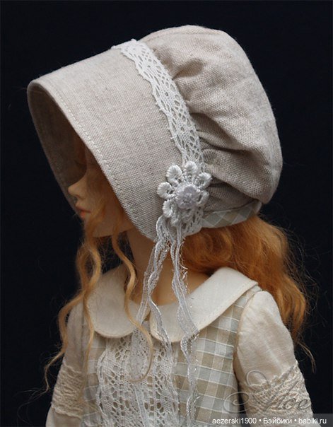 Мне, конечно, нравятся чепцы и боннеты, и я бы голосовала за такой головной убор. Но у Вашей куколки костюмчик в цвет французского флага, так что берет тоже можно «подогнать» в образ. Красивая девочка! Поздравляю с такой удачей в коллекции!