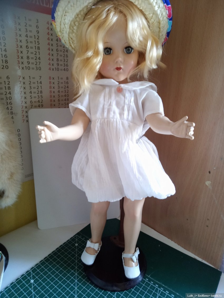 За свою жизнь кукла трижды переезжала с хозяйкой, а теперь хозяйка не может везти ее с собой за 1000 км, вот и выставили на продажу. По всему видно, что это очень любимая кукла, хозяйка даже расчувствовалась, когда я пришла. Но я показала фото своих кукол, нарядов и реставрации, и она поняла, что ее Светлана будет в хороших руках.