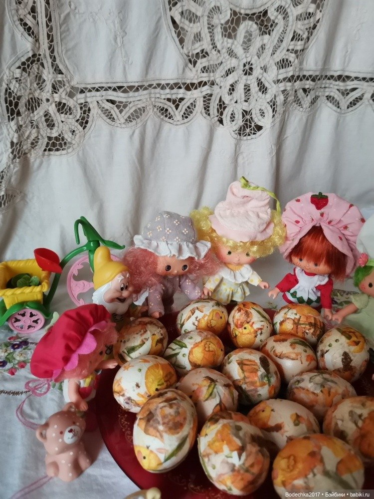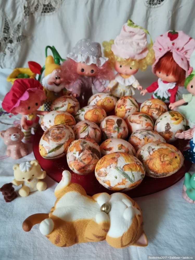 В этом году мы с малышами декорировали яйца салфетками. Получилось симпатично.