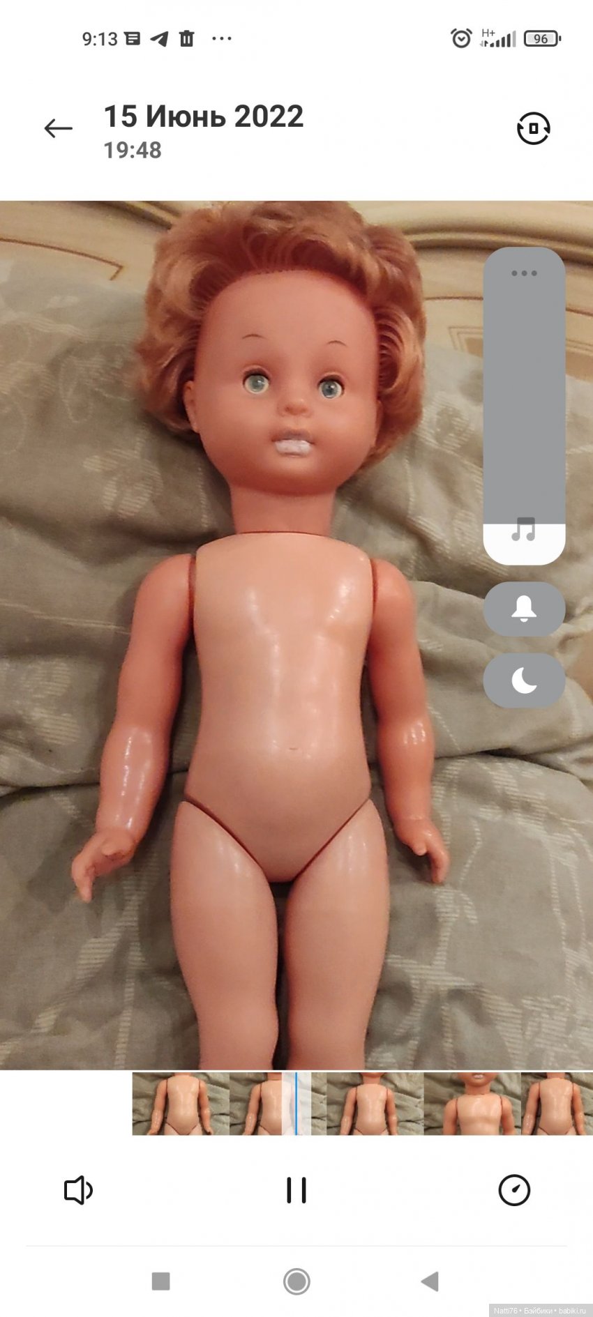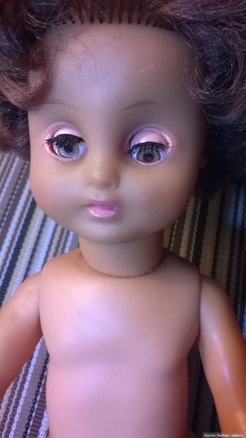 На сей раз француженка -38сантиметровая Бэллочка.С недавних пор я очень ими восторгаюсь.Такого бархатистого винила, таких мягких шелковистых волос на многокоатно перелюбленных мною Гэдээрочках я не встречала.А эта… Сероглазая смуглянка)))Восторг просто детский)))Меня восхищает её персиковая кожа рук, ног, головы… пальчики на руках и ногах, ушки, носик-всё такое аккуратненькое)))Конечно, из-за возраста и, вероятно, не очень трепетного с ней обращения предыдущей маленькой хозяйкой, уже нет того завораживающего взгляда«ку-ку»(Но! Эти удивлённо распахнутые светло-серые глаза!!!)))… Пока в том платье, что продавали.Будем наряжаться и перенаряжаться ещё не раз)))Туфельки и бусики подарены мной.Долго рыскала по инету, хотелось найти имя молда… тщетно((Более менее похож молд Луизон.