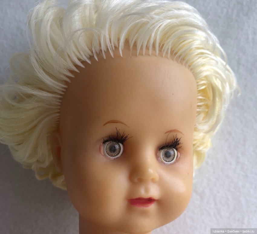 Светлан… я прям в замешательстве...3й день мучаюсь в догадках… как только кукла попала ко мне в руки… смутило сразу то, что никаких абсолютно опознавательных знаков нет… у Бэлл клеймо быть обязано, у Гэдээрок цифры… но краааааайне редкое исключение -это отсутствие всяких знаков.Меня смутили руки-не похожи на французские… но ресницы никак не немецкие, а как раз тоненькие и жёсткие, как у Бэлл… Я дёргалась, ибо на 100%не была уверенна в её подлинном происхождении…