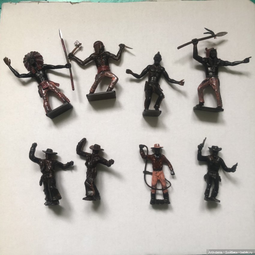 Индеец, превращенный в скво, и ковбой внизу — это 80-е. У меня тоже такие наборчики были.