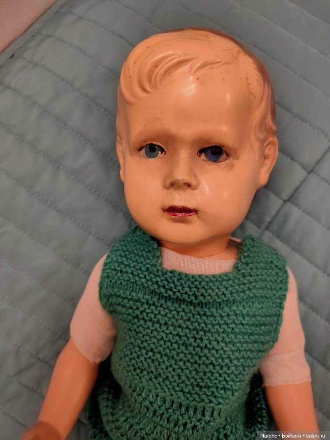 Я долго просматриала сайты в Чехии и Польше, где продают старых кукол. Искала похожего мальчика, чтоб узнать производителя. Нашла за 2 месяца только одну куклу на Чешском сайте. Там информации полезной не было, к сожалению. Вот эта фотография.