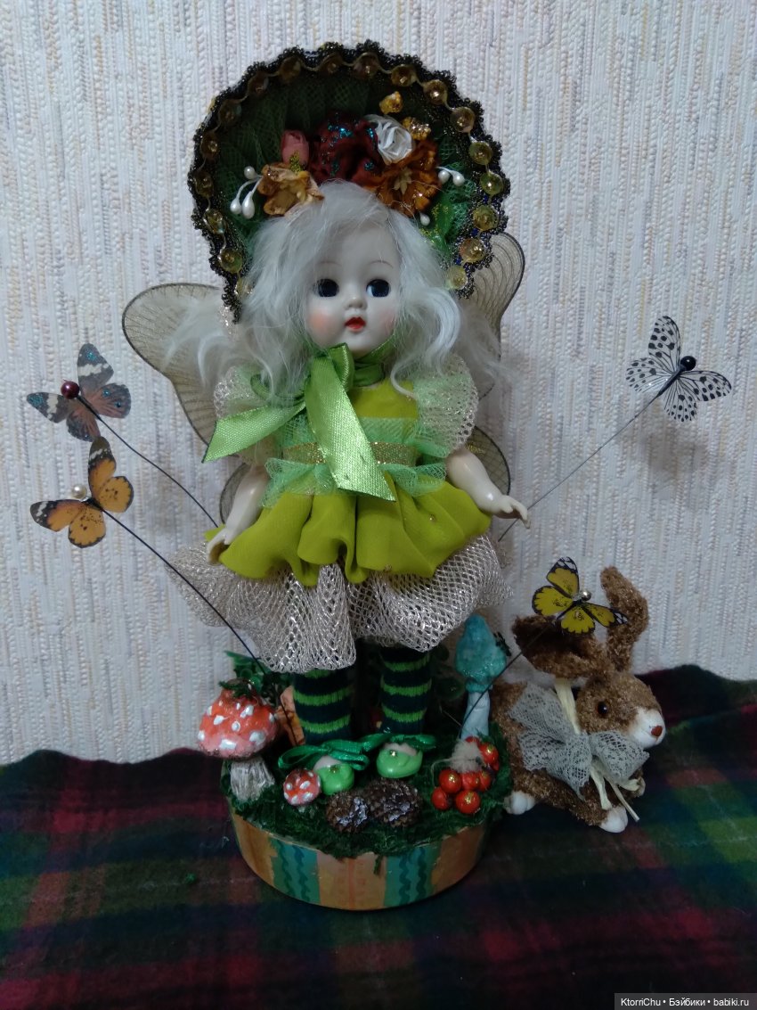 Платье и туфельки родные. Досталась мне с блошиного рынка и дешево, так как в глазах радужки отсутствовали. Но это было нетрудно починить.