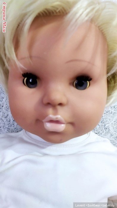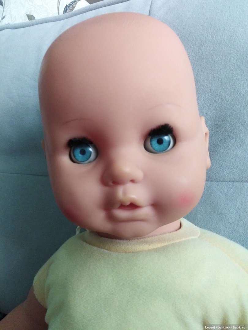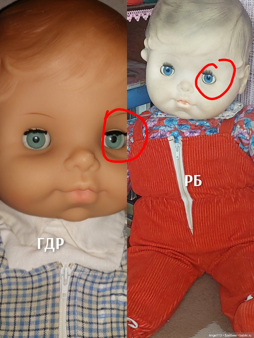 Куколка не моя, на соседнем сайте спрашивают. Живет в семье долгие годы, кто и откуда хозяева не знают. Я знаю, что ГДР, а вот примерный год выпуска и фирму не знаю. Буду благодарна за подсказку. На втором фото мой пупсик, без волос. Такой же или другой всё же?