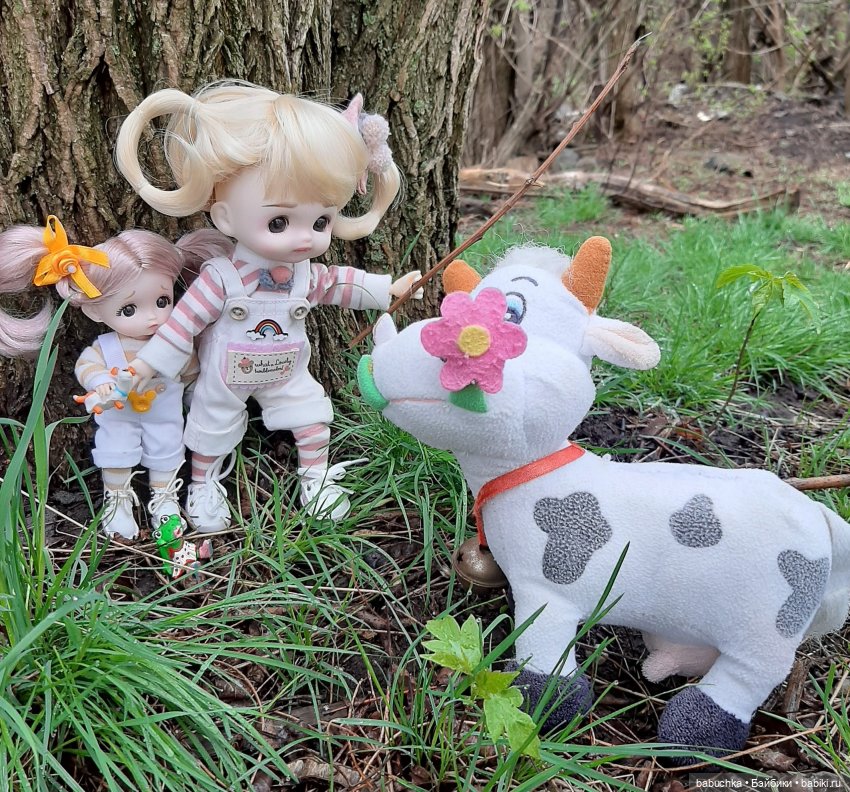 Добрый вечер, друзья! В моем фотоархиве осталась еще одна летняя серия «Веселых картинок». В июле у Фаины и Анфисы появились коровушки: Зорька и Красуля. Так долго о них мечтали! Какая же деревня без коров?!