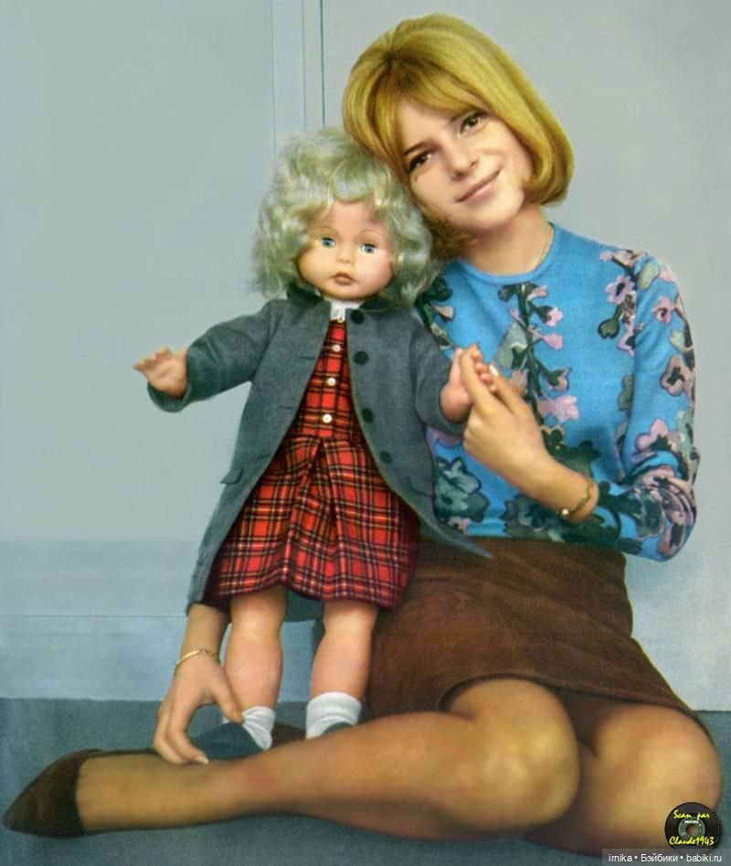 Я очень люблю французскую музыку и кинематограф, и особенно люблю шестидесятые-семидесятые. Лет в четырнадцать, когда я рассматривала фотографии французских звезд, я увидела фото Франс Галль с куклой, которая стала первой игровой куклой-девочкой, которую я увидела в сознательном возрасте и очень хорошо запомнила. Она не была похожа ни на набирающих тогда популярность в России Барби со «странными» личиками и фигурками, ни на лысых пупсов Baby Born от Zapf Creation, ни на китайских фарфоровых кукол с холодными гладкими личиками в синтетических платьях принцесс и с золотистыми кудрями, которых ни в коем случае нельзя было ни расчесывать, ни заплетать во избежание облысения оной. Хоть я и росла в девяностые, но наши любимые стильные немочки, мне, увы, практически не встречались, а тут такая роскошь — игровая красавица с густыми волосами, в настоящем маленьком пальтишке и ботиночках! Как я сейчас понимаю, именно эта кукла с картинки во многом повлияла на мои сегодняшние вкусы в кукольном мире. Большая часть моих любимиц — это девочки с миловидными задумчивыми личиками и легкой грустинкой.