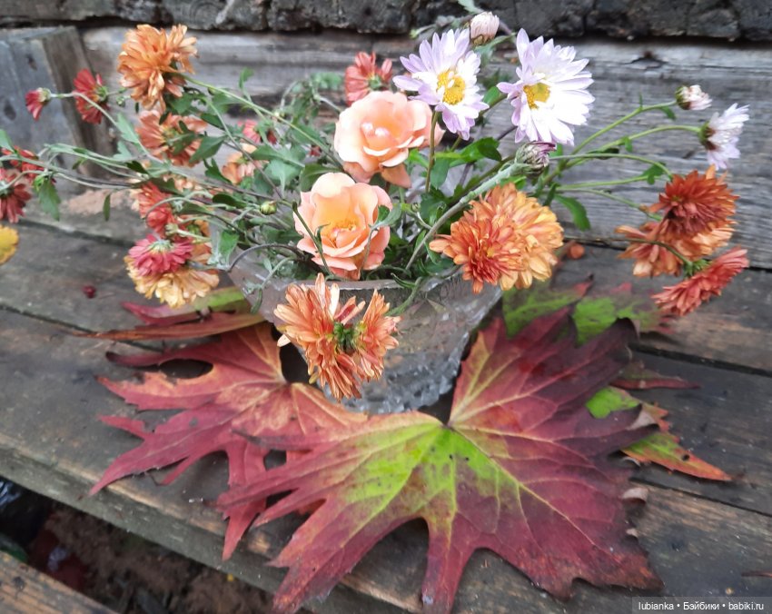 Цветочная растительность оскудевает, поэтому показываемся в пёстрой мозаике осенних листьев.И даже в люлечке из белых грибов 🤗