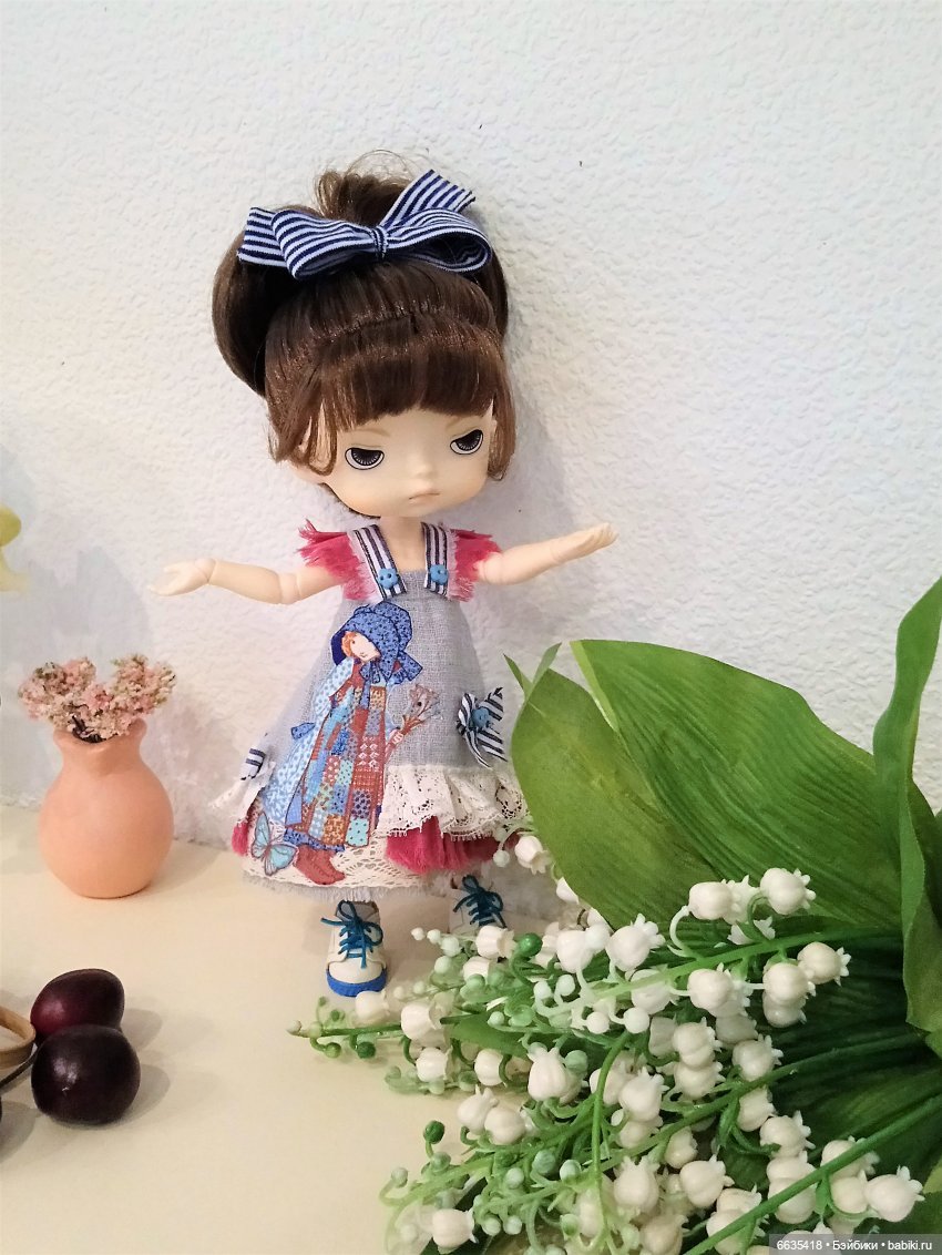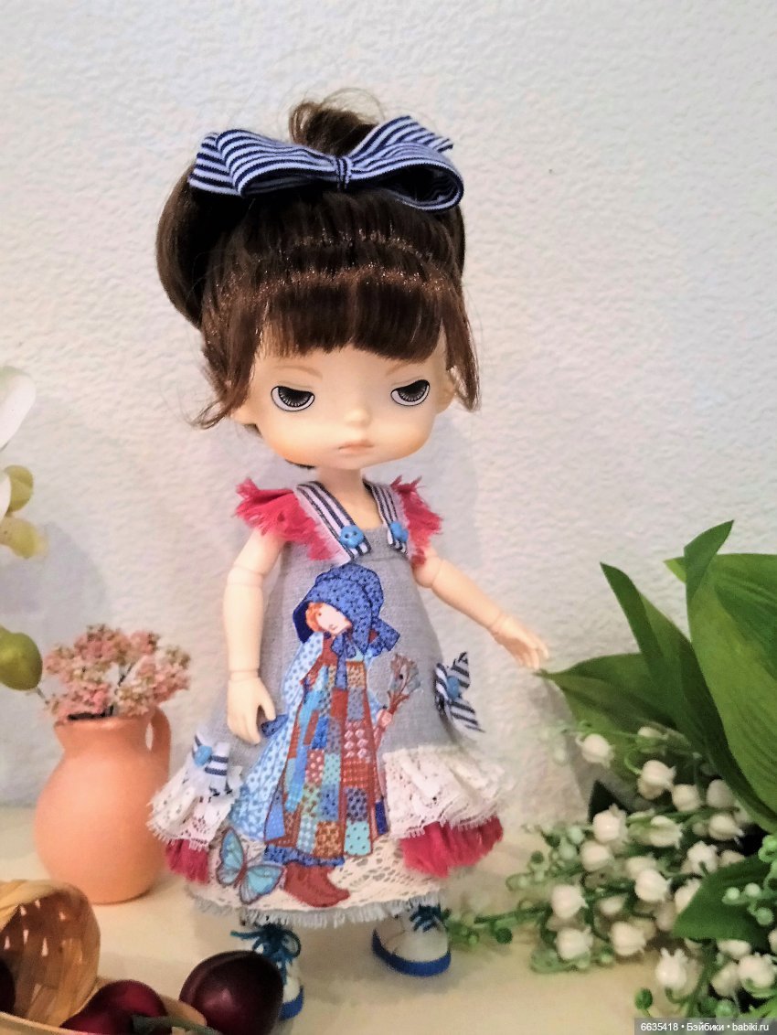 Девочка ростом 27 см. очень милая и трогательная. Создана по мотивам персонажей Холли Хобби (Дениз Холли Улинскас, 1944 г. р.) — американской писательницы, акварелиста и иллюстратора.
