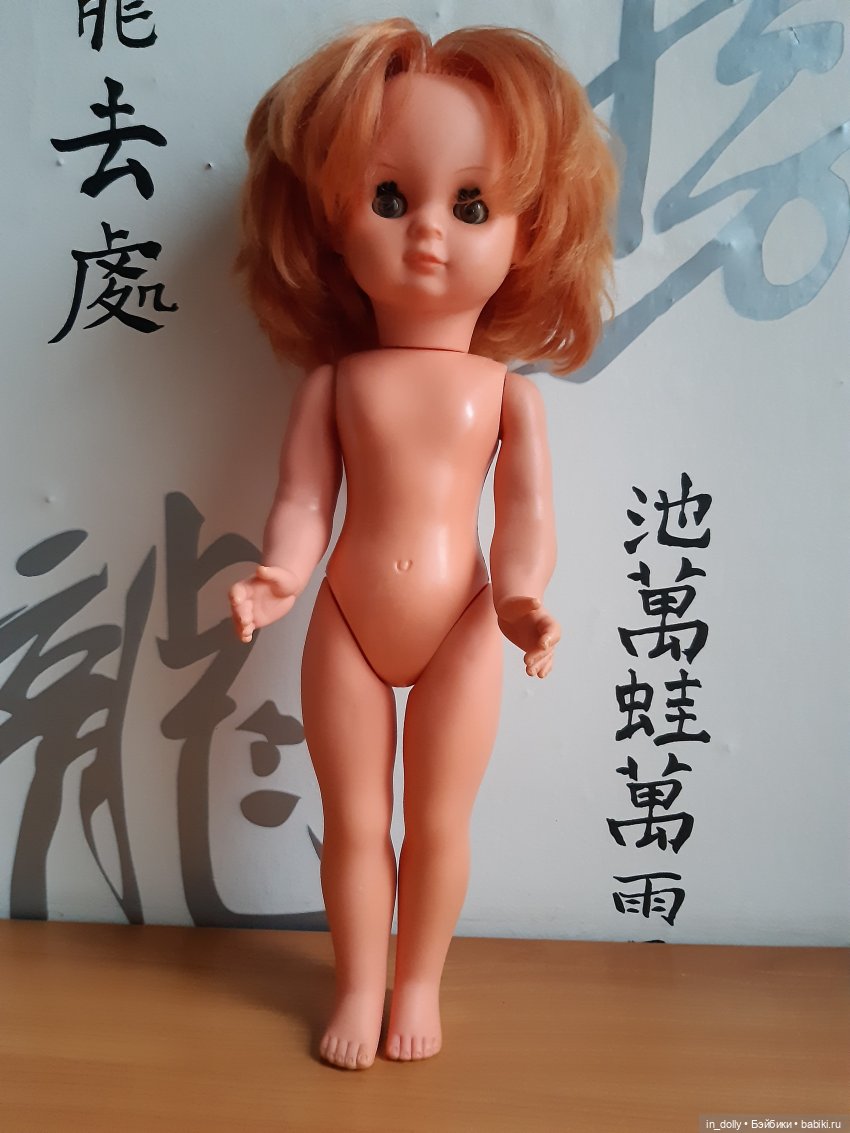 А у меня таких кукол штуки три, вроде. Просто покупались давно, в разное время, и все ждут приведения в порядок, поэтому, уже и не помню. Состояние у них тоже разное, кто- то совсем плохой, а вот эта кукла, по- моему, почти неигранная. Только помыть да причесать. Очень она мне нравится. Если память мне не изменяет, она на резинках.