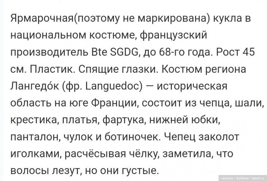 Я не ждала её… Не мечтала… Не чаяла… Она сама появилась у меня… С лёгкой руки и благодаря щедрому сердцу моей кукольной Феи✨️🎉💖О ней и говорить то много не надо-просто любоваться… долго смотреть и наслаждаться её совершенством… Лёгкая, как пушинка, сделана из какого-то особенного пластика или полиэтилена.У меня подобных кукол нет.Крепления рук характерное для таких кукол-резинка.Жёсткие, тоже характерные для всех её соотечественниц, волосы.А вот глаза очень необычные-она громко хлопает ими, когда закрывает!))Фигурка-закачаешься)! А личико… так и хочется его постоянно гладить-такое персиково-нежное, какой-то особенный нежнейший полиэтилен. Стоит отменить, что одежда-родная.Стандартный 40-сантиметровый рост.