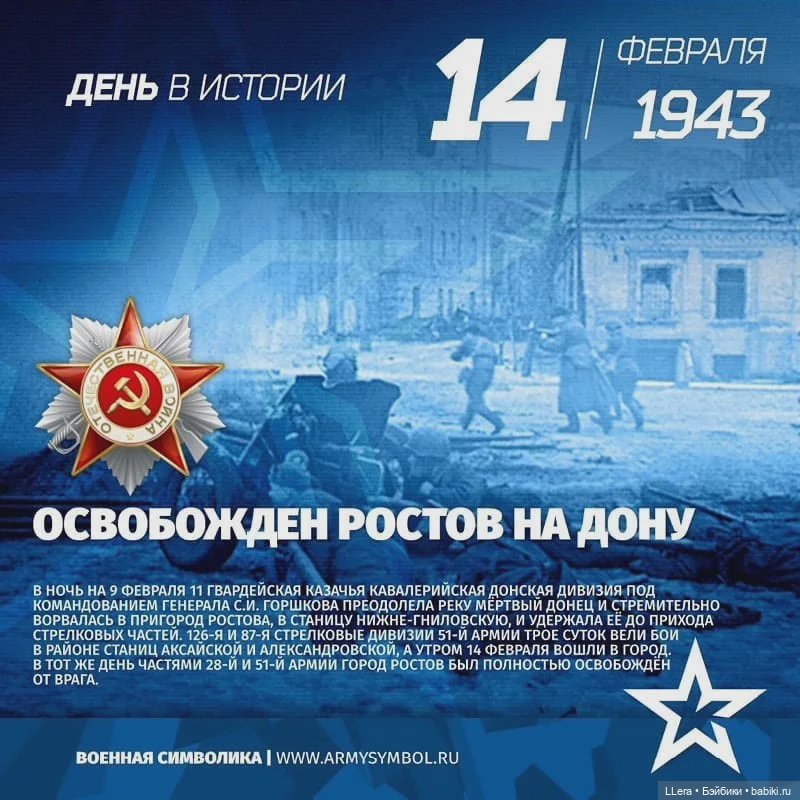 Поздравляю с освобождением Ростова-на-Дону, города Воинской Славы!