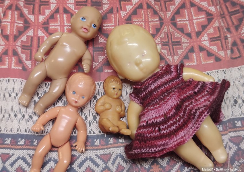 Без мебели фоткала, незамысловато, просто с игрушками.Малыши разные-немчики в основном, но есть и советских парочка, и один голыш-гонгконкский.А самый большой 15см дочин Кляйнпуппен Лихт, купленный ей в ЦДМ ещё в 1982 и почему-то названный Ванечкой, тоже угодил в эту мальчуковую компашку, хоть костюмчик на нём явно девчачий🤗Рада, что выжил и дожил))И кстати дочин ж пинеточник рядом с ним, жил безымянным.