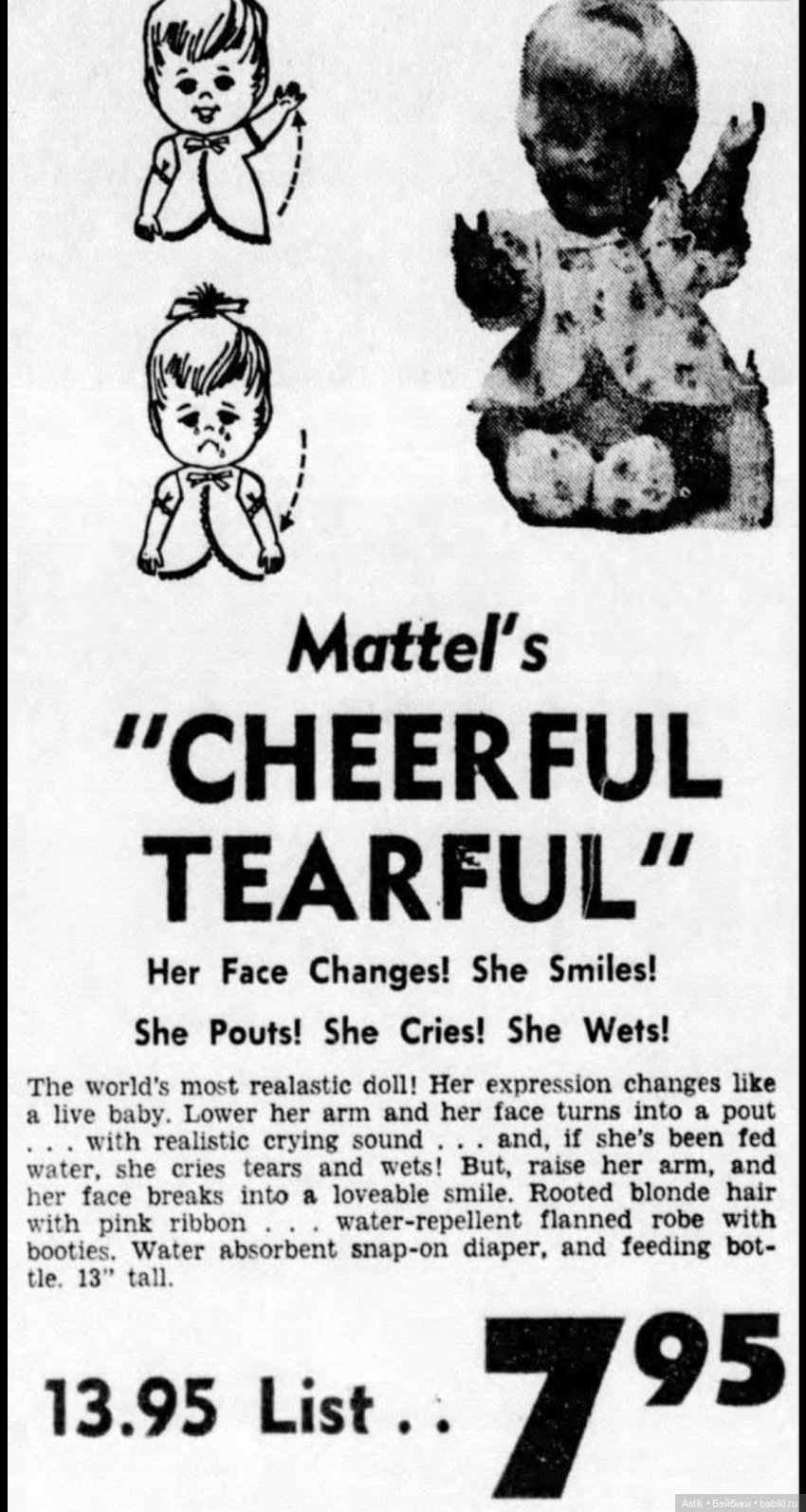 В интернете есть списки всех кукол Mattel 60х годов, но почему ни в одном нет Bebe Tip-Tap. Так как каталог на французском языке, может эту куклу выпускали только на Францию? И где можно узнать тираж куклы?