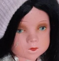 Мне кажется, или шерсть надо или козочку, чтобы смягчить черты лица, сделать более нежным. Но я бы орентировалась на причёски антикварных кукол. Примеров великое множество, можно выбрать на любой вкус.