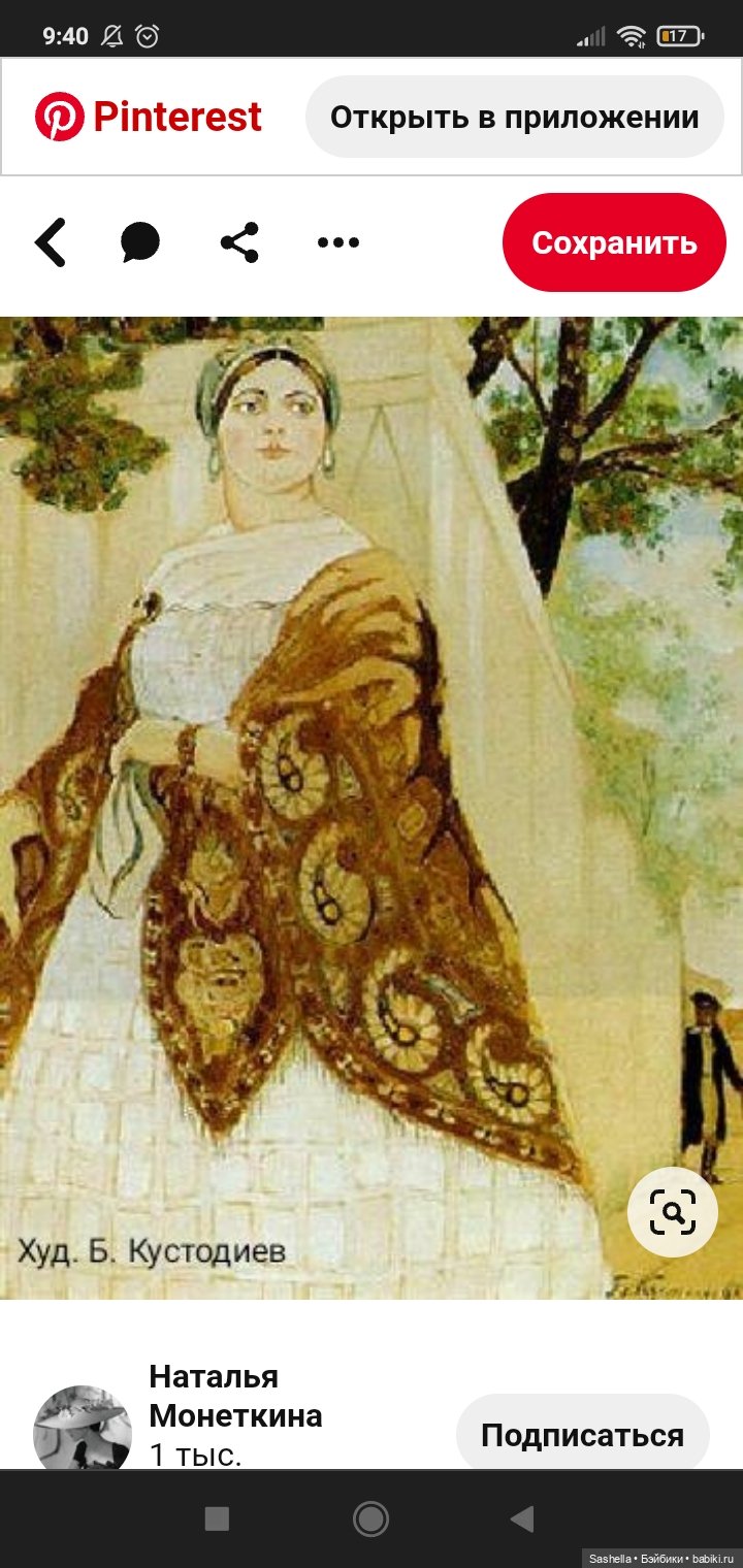Еще платок на плечах ей идет, скрадывает диспропорции в этом месте. И ассоциации сразу с Кустодиевской купчихой, только прическа там другая и платок солоха