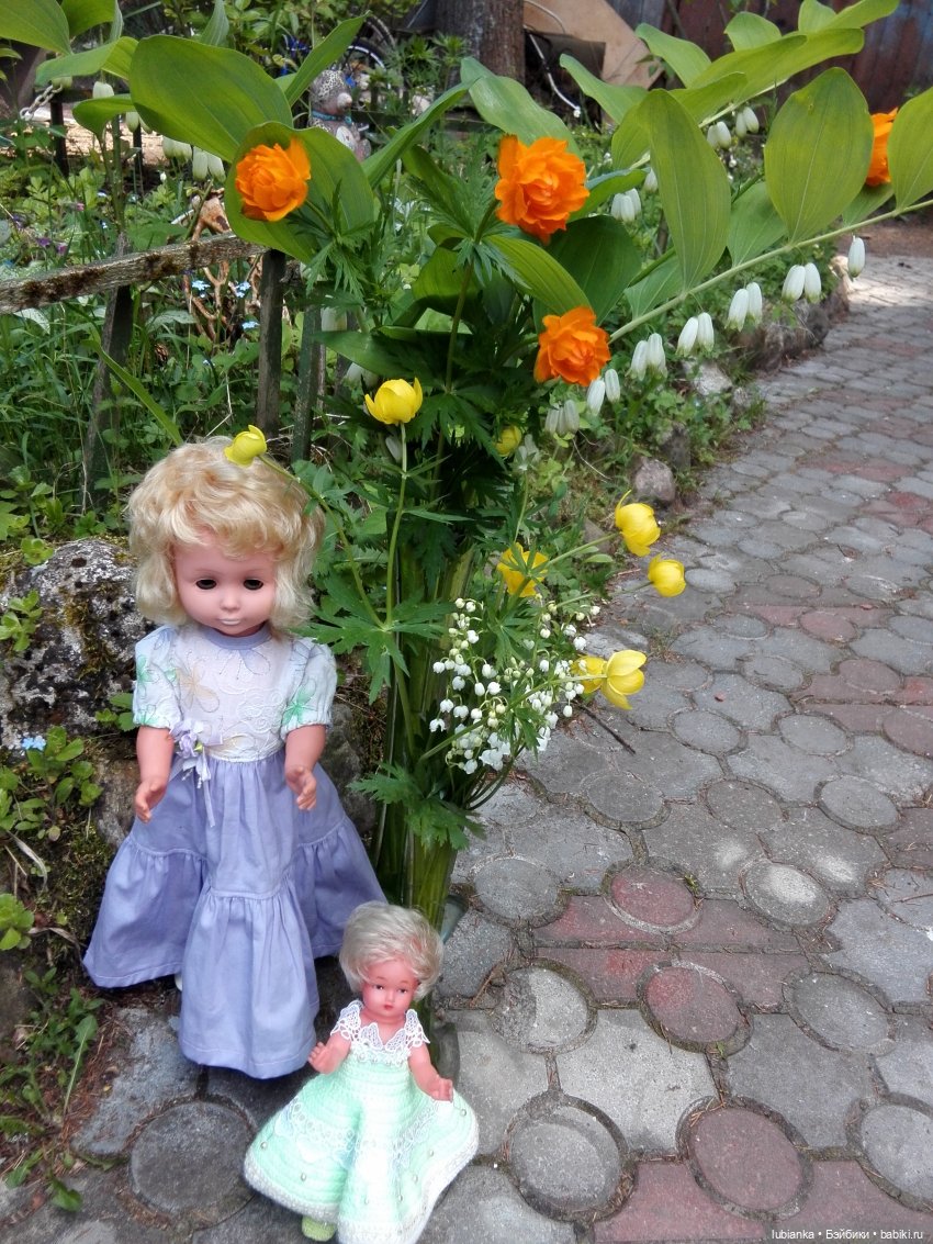 И размерчик подходящий-20см))А платье для неё мне вязала 87летняя мама моей детской кукольной подружки)))На фото цвет не совсем тот(((Она ещё ей фату сделала и букет роз связала