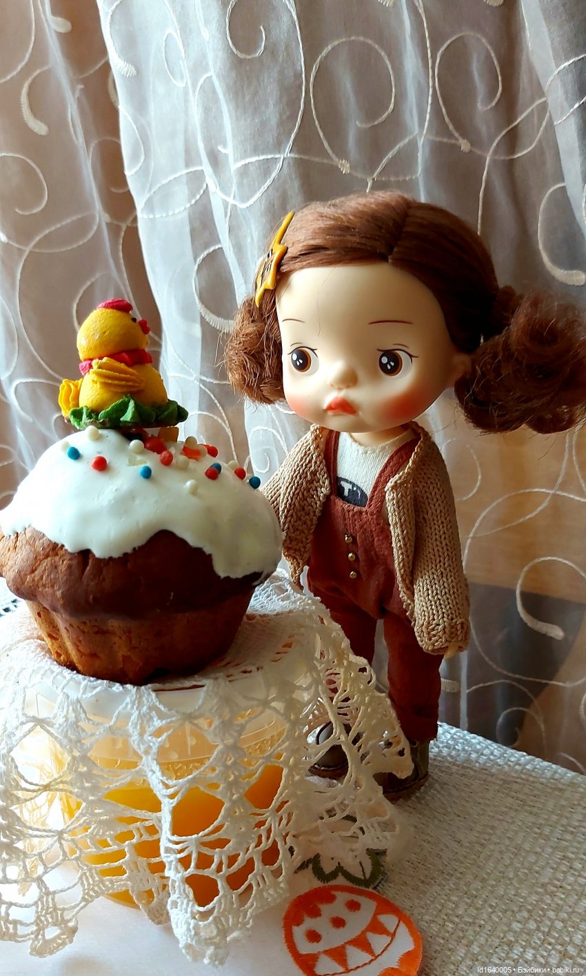 Мои куклята собрались вокруг ароматного кулича с крашеными яичками и шлют вам свои приветы и поздравления! Сегодня в их доме людно и шумно. Даже Нонна Матвеевна ненадолго отпросилась с работы, чтобы побыть со своей семьёй вместе🥰
