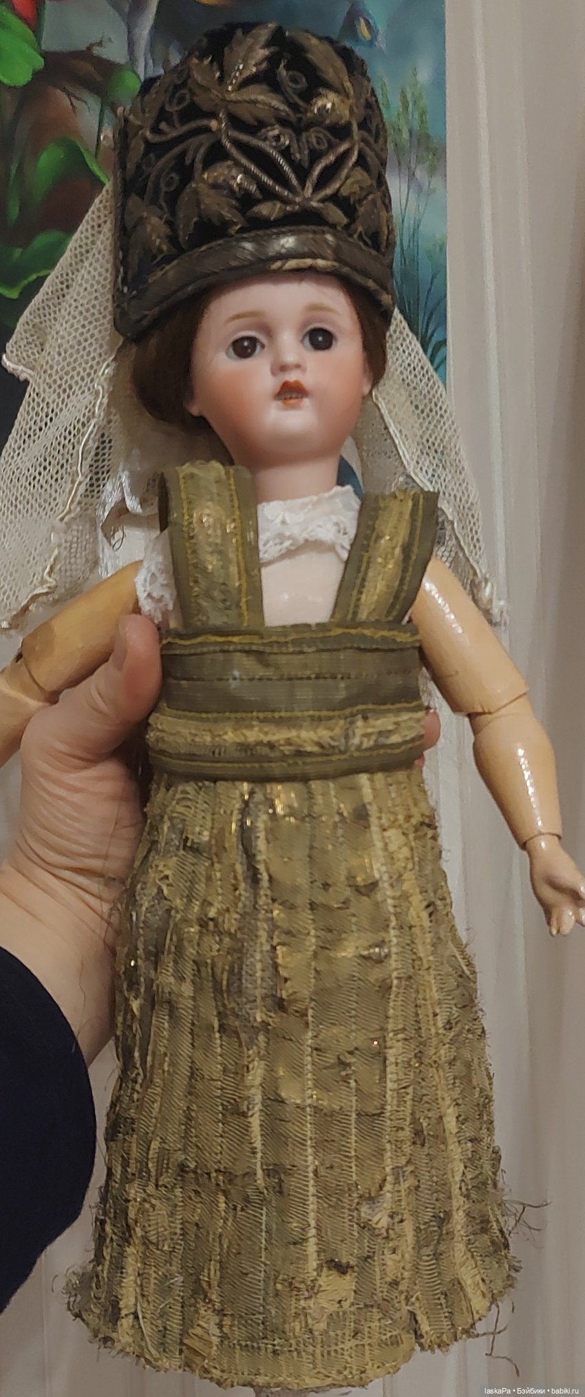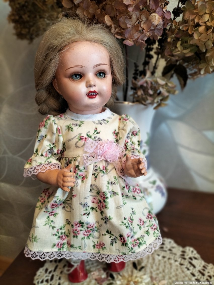 А этой малышке очень подошёл. Та одежда, в которой она ко мне попала, была винтажная самосшитая и как-то с этой куклой дисгармонировала. Сейчас вот потихонечку собираю ей новый костюм.