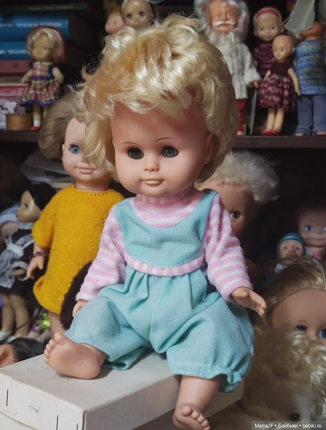 Сонька была спасена мной ещё в 90-е, от польского рабства. Однажды, придя в гости к подружке — юной продавщице, я увидела у неё в шкафу склад новых испуганных немецких пупсов, прижавшихся друг к другу.