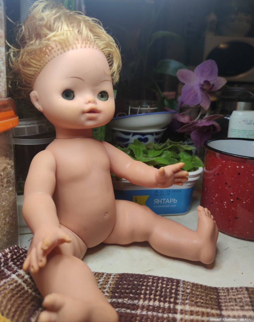 Сегодня после дождя прогулялись с новенькой(30см виниловая ГДРочка, скорее всего Бигги… или нет?)-благо есть где гулять, есть в чём гулять и есть с кем гулять)))Вовсе не собиралась покупать новых кукол.Но опять те же грабли!(((Банально просто-увидела и растаяла… Хотя ничего особенного в ней нет.Покорили необычные жемчучно-розоватые мягкие волосы… носик-курносик… и смущённый взгляд… вот и всё… Одёжка нашлась новенькая сразу-к цвету глаз подошла, даже туфельки на такую толстую ножку впору.А собарик...-в него то она сразу вцепилась и не отпускала долго)))