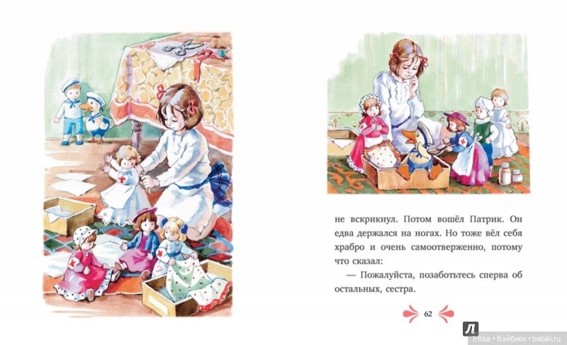 Картинки Хонор показывали кадры из Лениной кукольной жизни. Причём, если бы Лена не знала, что иллюстраторша умерла задолго до её рождения, то заподозрила бы, что она за Леной подглядывала 🧐