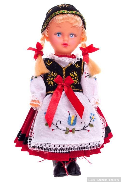 А про эту девочку Валерия написала — чешская или польская сувенирная куколка. Если есть у кого более подробная информация, напишите, пожалуйста. Было бы здорово узнать, в чем таких кукол выпускали, чтобы попытаться сшить похожий наряд.