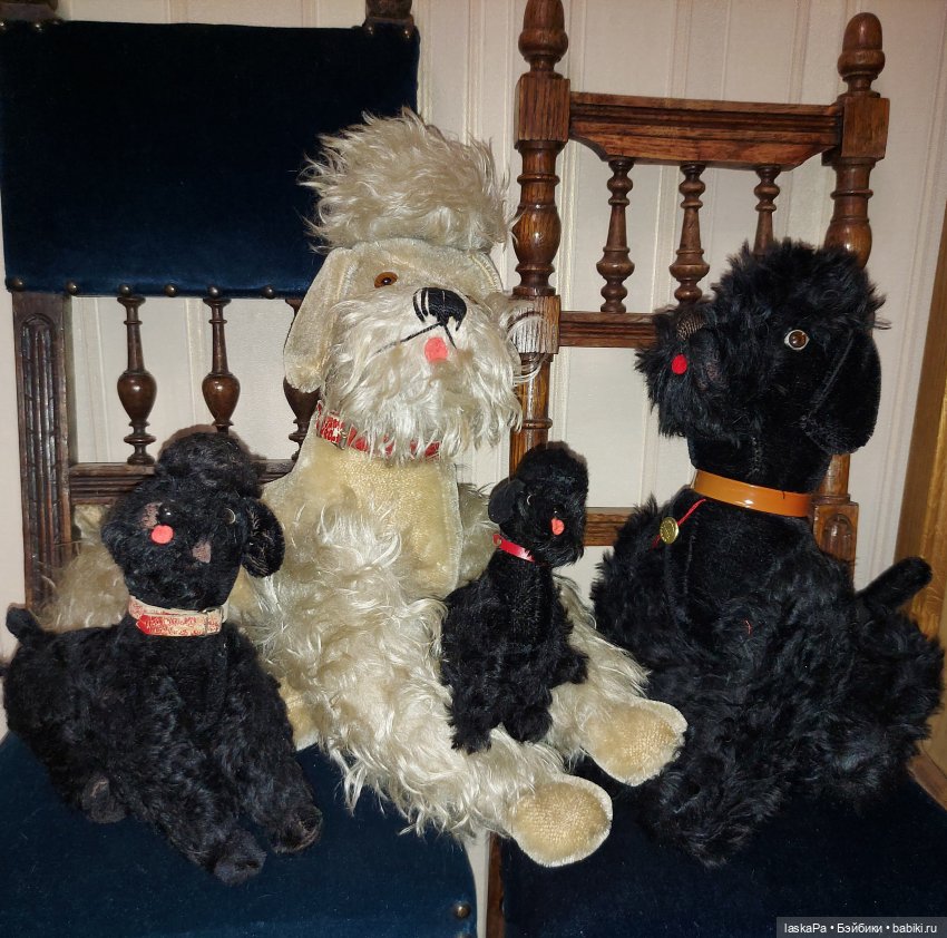 Слева чёрная и большая светлая — Steiff (с клипсами в ухе), маленькая и чёрная справа Hermann. Различия можно найти только при детальном сравнении.