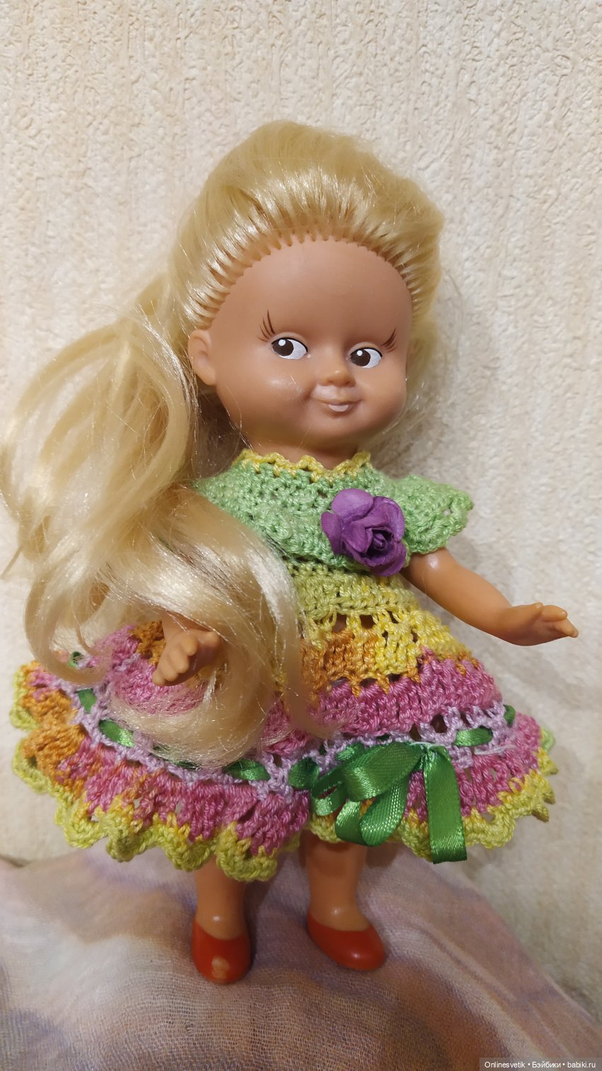 Назад в шкаф не убрала, так и осталась лежать на полке.А сегодня смотрю на неё: а она ж прехорошенькая)! Кстати в родном платье.Вымыла волосы, уложила,-я и не знала даже, что может получиться из них незамысловатая причёска)! Заняли в долг у мини ПР Элии платьишко-и она сразу повеселела и преобразилась))Туфельки правда пока не подобрали, но точно знаю, что найду! Не буду я её убирать далеко в шкаф-пусть красуется теперь на видном месте🤗А теперь ждём гостей-и сестричек, и братишек, много же их ещё ходит по белу свету🥰Всем будем рады💖