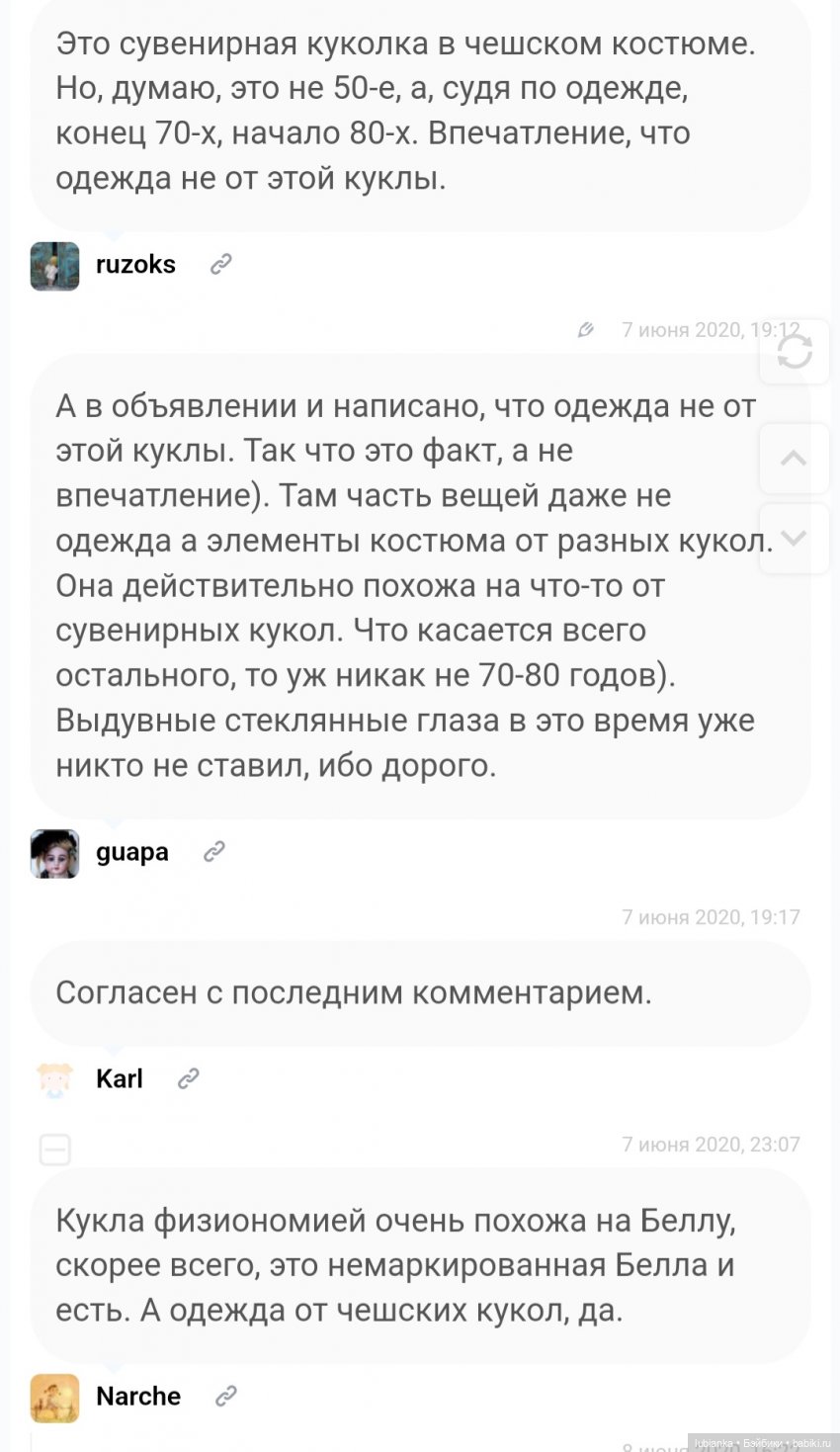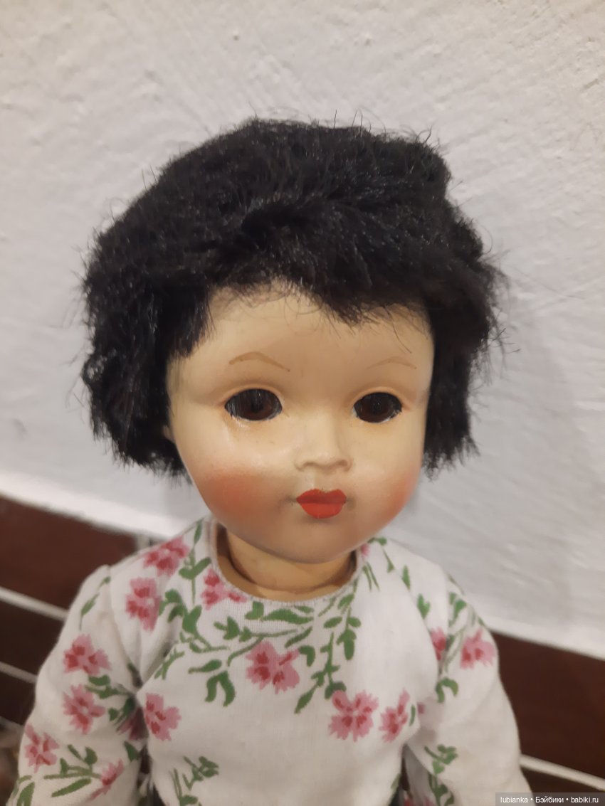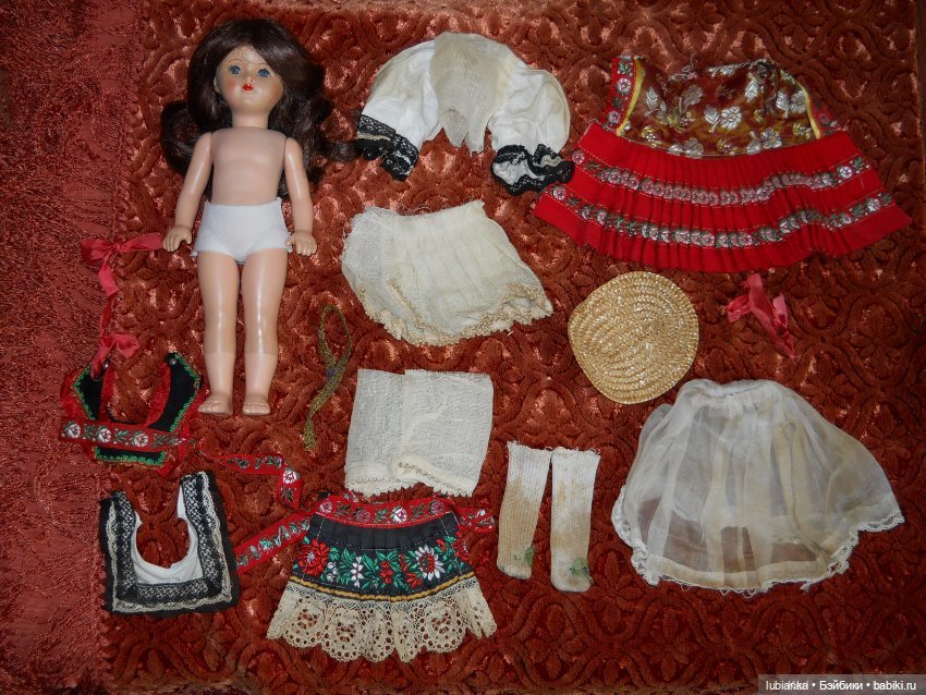 .Ну и, конечно же, ко мне вернулась её родная сестра🥰Разница лишь в том, что уехавшая была сероглазка с русыми длинными волосами, а эта -кареглазая брюнетка! Очень интересная кукла! Аутентичная-аутентичная.Кукла-загадка… Вроде бы мы определили, что это якобы немаркированная Белла-очень похожи крепления и материал, из которого сама кукла.Вроде бы… Но при чём тут Франция(кстати кукла куплена в Марселе совсем недавно)и Чехословацкая фабрика Lidova tvorba и национальный костюм Словакии???.. Фабрика работала с 1936 г.и по сей день трудится.Интернет пестрит самыми разнообразными куклами именно в этом«пресловутом» костюме(ну просто лично меня раздражает его миллионное тиражирование)…Моя любимая и весьма уважаемая подруга, когда увидела фото новенькой, умоляла меня оставить её в родном костюме… Но… фото-это фото.А явь-совсем иное дело.Я ещё никогда не держала в руках столь грязного и плесневого одеяния☹️Я-человек брезгливый.Куклу оставить так не смогла.Хотя костюм мгогослойный и забавный-помимо множества марлевых складок на юбках, ещё и грудь накладная из бумаги😄 Не смогла только отодрать сапоги-пусть пока так «растут»🤗Вобщем, конечно, она будет искать себе новые образы-тут взываю к коллективному разуму: девочка весьма неординарная, кем ей быть, во что одеть???.. И как зовут пока тоже не знаю…