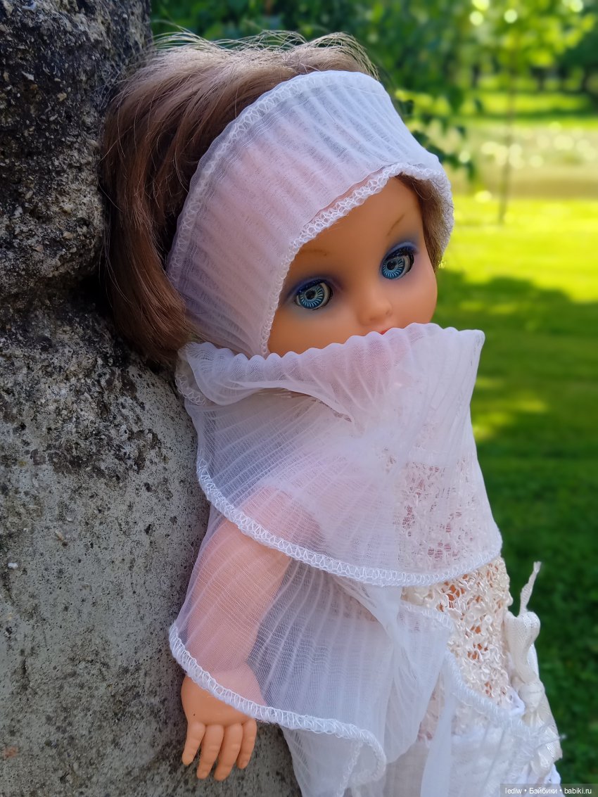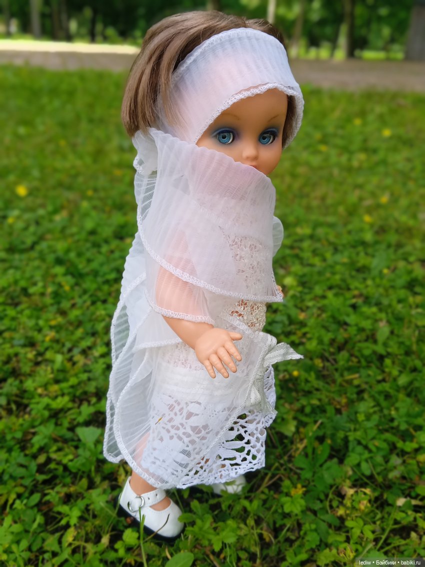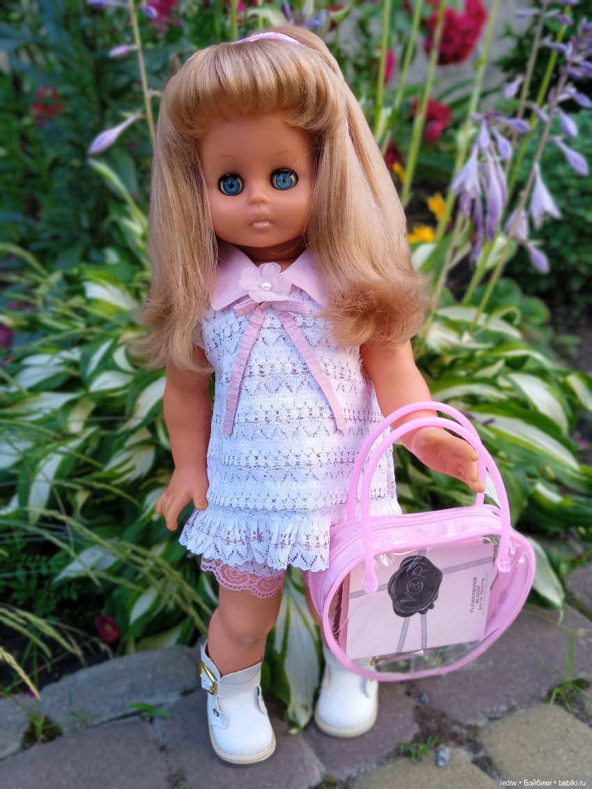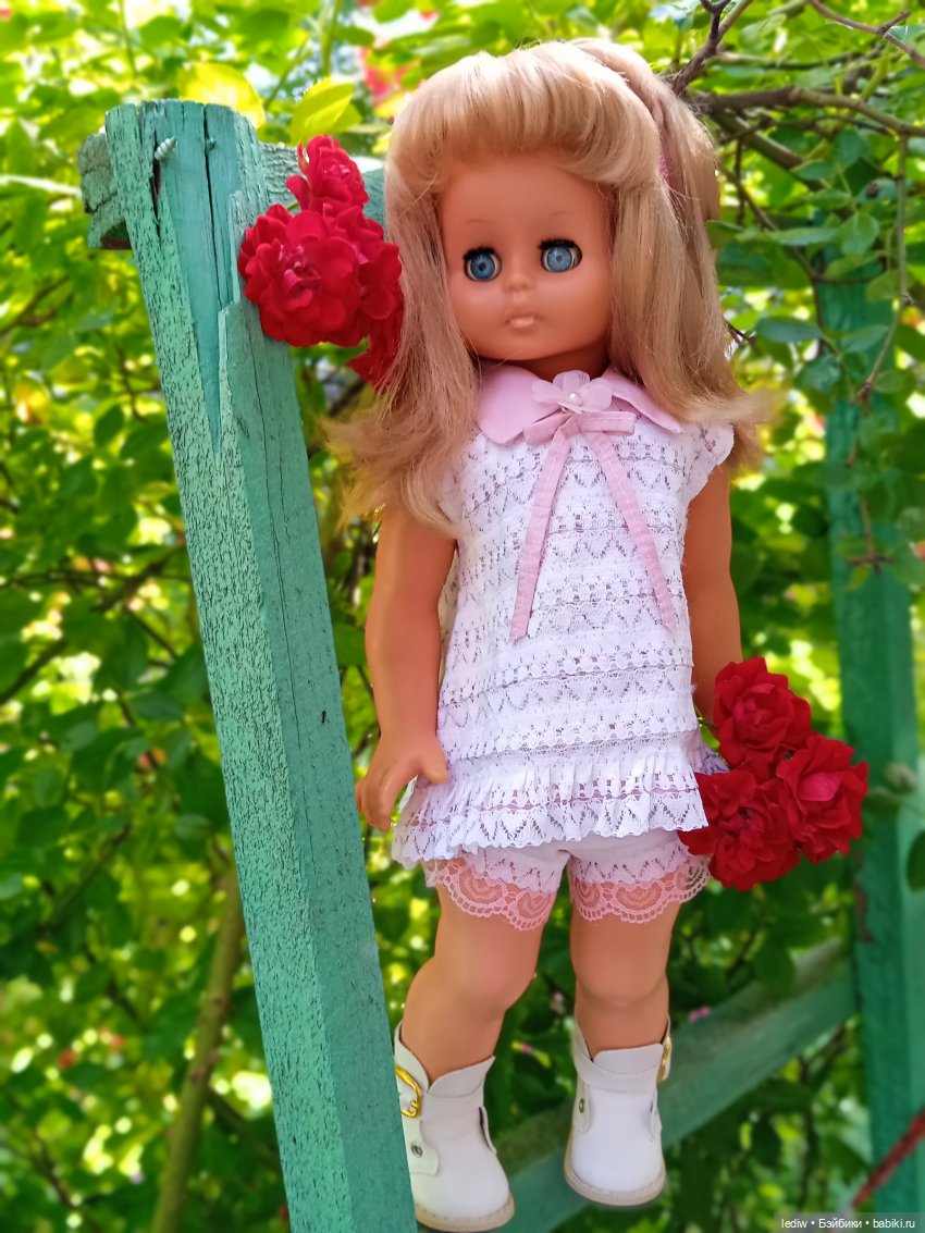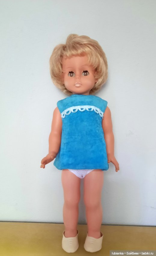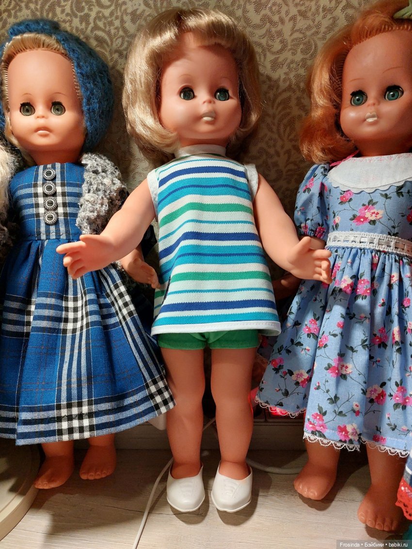 Это-моя кукла.И плевать, что у меня уже есть таких 3...(одна кстати висит в шопике именно потому, что не совсем моя!)Ради неё приехала вчера с дачи.И сегодня… спала с ней🤭Этим всё сказано.45см, Сонни.Мне сестру её родную подарили в 67году.Она сейчас на даче, поэтому пока фото «соло».Но мы ещё покажем себя не раз🤣Так как нет сейчас дома горячей воды-бани обычной не было, даже волосы не мыли🤦♀️Но всё равно покажемся вам.И про имя спросим тоже.Молчит пока.Радуется, что попала по адресу😁Родное платье моего любимого цвета и даже родные туфли!!!)))Но… никуда не годится, что у взрослой девушки видны трусы из-под платья😏Это, на мой взгляд, фу...(((