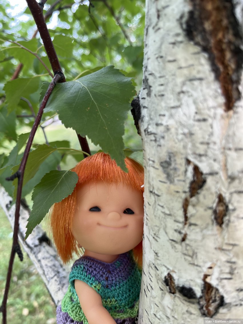 Всем большой привет! Недавно в нашей куклосемье на одну рыжую стало больше. К нам прибыла Варькина родственница (так, седьмая вода на киселе))) какая-то там сестра …якобы. Сходство есть, но лишь в том, что обе рыжие, одного ростика и имеют довольно хитрые лица, приятной наружности ))«сестра» назвалась Бертой Ирискиной. Ага. Какая она Берта Ирискина? Мы, кАНеШнА, с Варькой ей поверили ииии решили именовать Ириской. Чем-то прям ириску напоминает, такая же и цветом и приставучая липучая, но в целом забавная.
